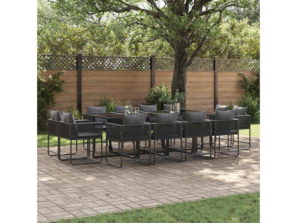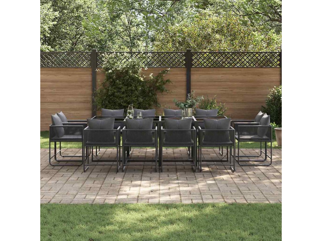 Tento zahradní jídelní set spojuje styl a praktičnost, takže se hodí do jakéhokoli venkovního prostředí. Elegantní černý design a čisté linie z něj dělají skvělý středobod pro vaše venkovní setkání. Je ideální pro společenské chvíle, jídlo nebo prostě lenošení, a přináší pohodlí a eleganci do jakékoliv atmosféry.