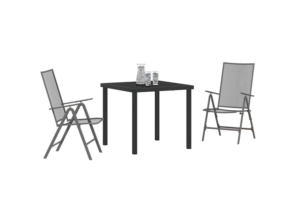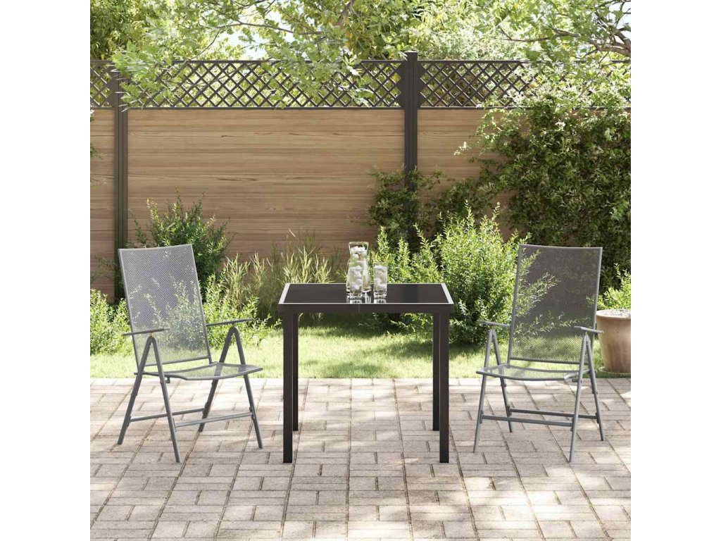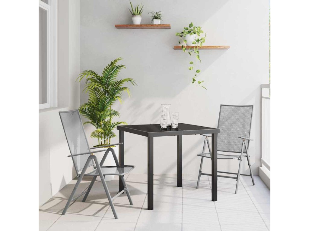 - Práškově lakovaná ocelová konstrukce Zahradní jídelní set je vyroben z kvalitní práškově lakované oceli, která je známá svými vynikajícími vlastnostmi a odolností. Tento materiál poskytuje robustní strukturu, která odolává povětrnostním vlivům, jako je vítr a srážky, zajišťující, že set vydrží mnoha sezonám radosti. Povrchová úprava dává setu moderní a elegantní vzhled, který bez problémů doplňuje současnou zahradní estetiku.