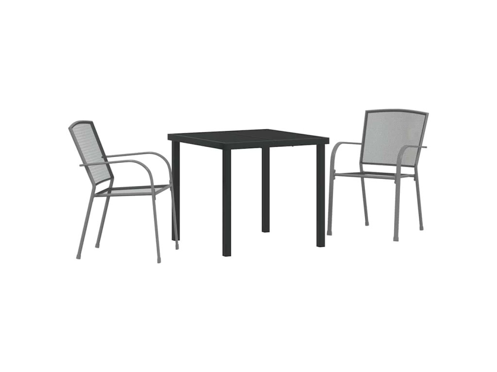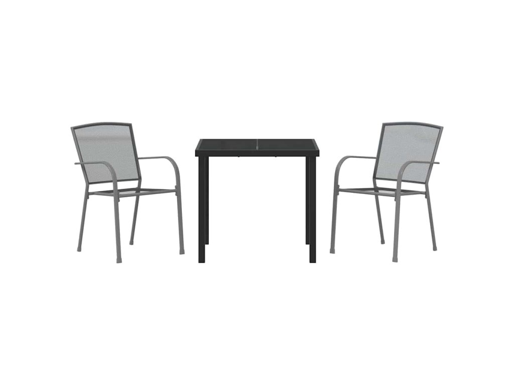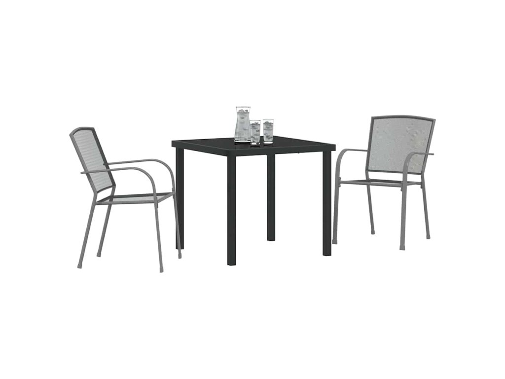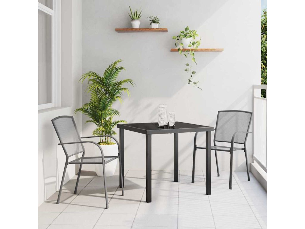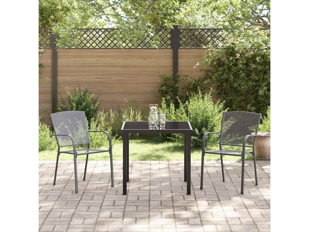 Tento moderní zahradní jídelní set je ideálním doplňkem jakéhokoli venkovního prostoru, nabízí dokonalou kombinaci moderní estetiky a praktičnosti. S hladkým antracitovým povrchem, který harmonizuje s živou zelení zahrad a teras, tento set zve hosty k pohodlnému a stylovému stolování pod širým nebem. Navržen pro ty, kteří ocení moderní design, set zahrnuje robustní stůl a ergonomicky vytvořené židle, připravené hostit setkání od intimních snídaní po velké rodinné večeře. Hladká deska stolu z tvrzeného skla zajišťuje, že jídla vypadají stejně nádherně jako okolí, což dělá stolování pod otevřeným nebem příjemným zážitkem.