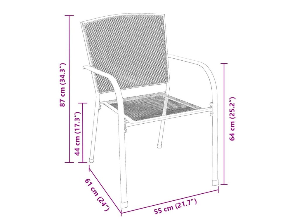 - Chytrý design: Každá židle je stohovatelná s ohledem na pohodlí a využití prostoru. Tyto židle mají ergonomické ocelové opěradla pro větší podporu a opěrky rukou jsou potaženy pro pohodlné používání. Pevný ocelový rám zaručuje stabilitu, což znamená, že se na tento set můžeš spolehnout při mnoha nezapomenutelných venkovních jídelních zážitcích.