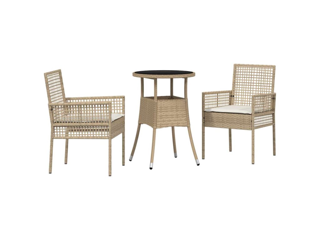 - Odolný materiál: Zahradní jídelní sada je vyrobena z kvalitního poly ratanu, který zvládne různé povětrnostní podmínky a zajistí dlouhou životnost. Odolává také UV záření, takže se nevybledne na slunci.