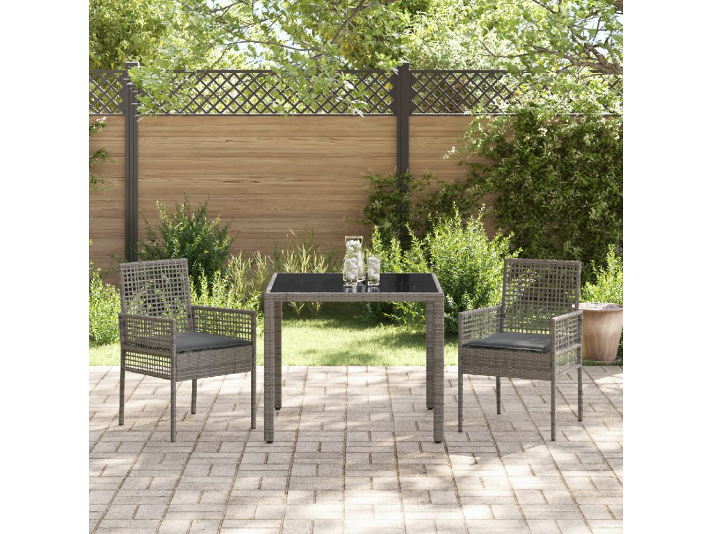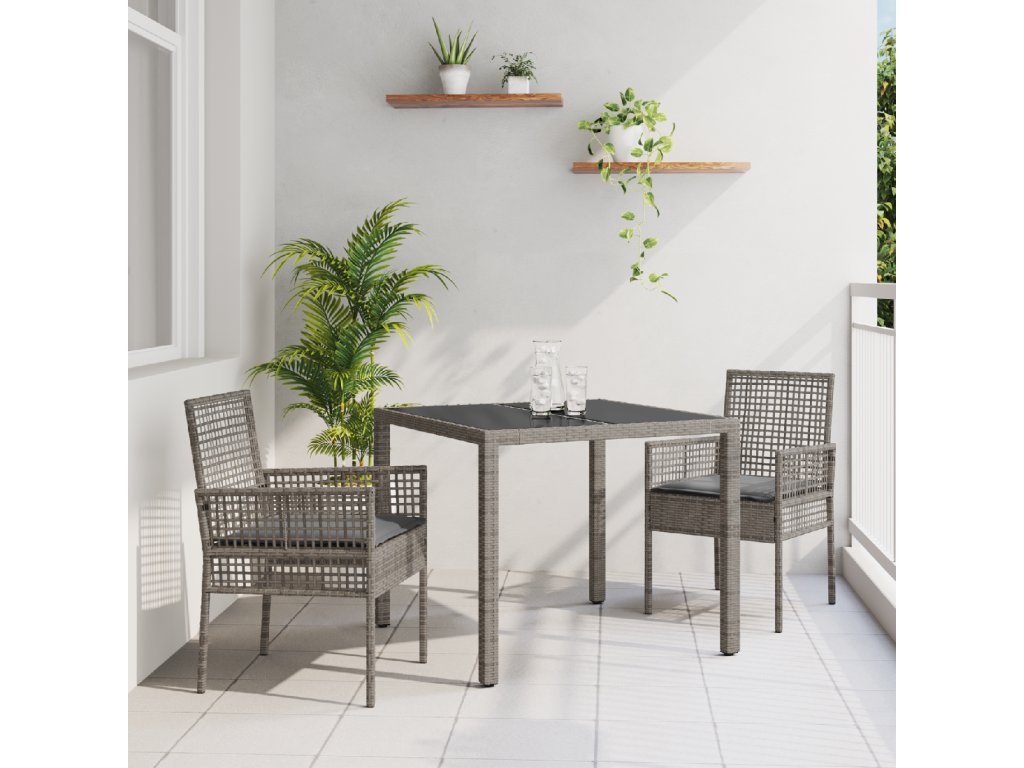 Tato sada zahradního jídelního stolu je skvělá volba pro venkovní stravování. Obsahuje robustní čtvercový stůl z kvalitního poly ratanu a tvrzeného skla, ideální pro jídlo venku nebo prostě relaxaci s kávou. S moderním šedým provedením a chytrým designem skutečně oživí terasy, zahrady nebo balkony.