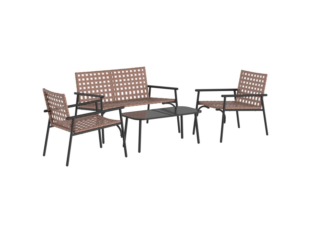 Tento moderní venkovní jídelní set je stylově navržený, aby vylepšil tvůj venkovní prostor a poskytl pohodlné sezení pro čtyři. Hnědé a černé barvy s ratanovými texturami a skleněnými vrcholy vytvářejí útulnou atmosféru pro odpočinek a užívání si zahrad, balkonů nebo teras.