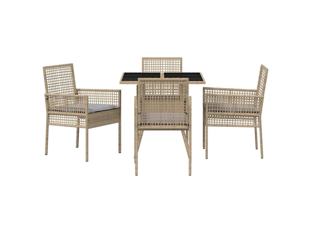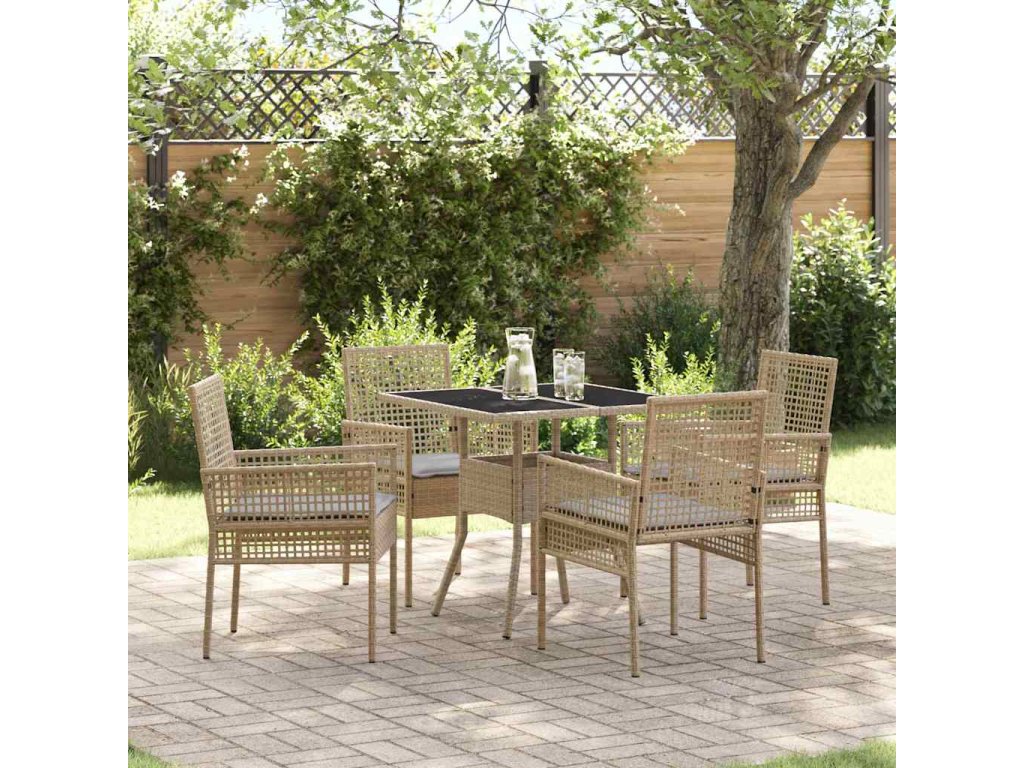 Tato zahradní jídelní sada spojuje styl a praktičnost. Má čtyři židle a velký stůl, ideální na venkovní jídla pro čtyři.