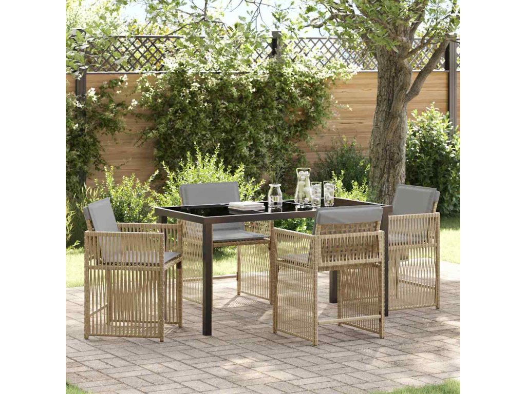 - Součásti: Sada obsahuje elegantní skleněný stůl, suitable for co se snadno čistí po jídle. Má pohodlná opěradla a opěrky z poly ratanu navržené pro lepší oporu během uvolněných večeří. Pevné nohy ti zaručí stabilitu na různých površích, zatímco měkké polyesterové výplně přidávají pohodlí během každého jídla.
