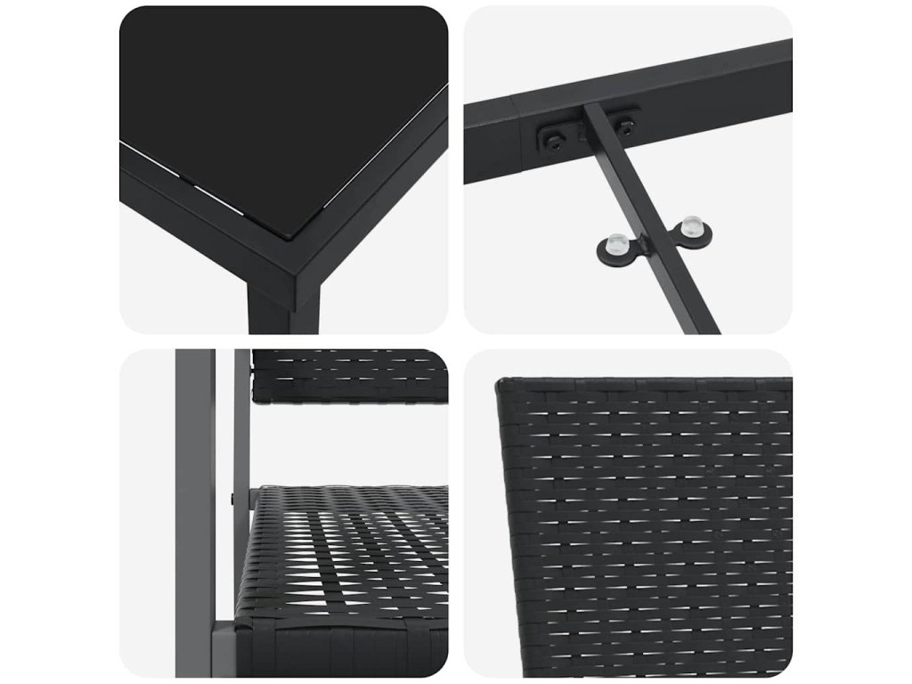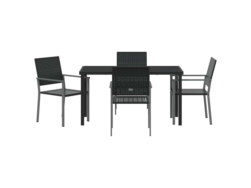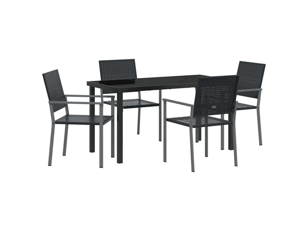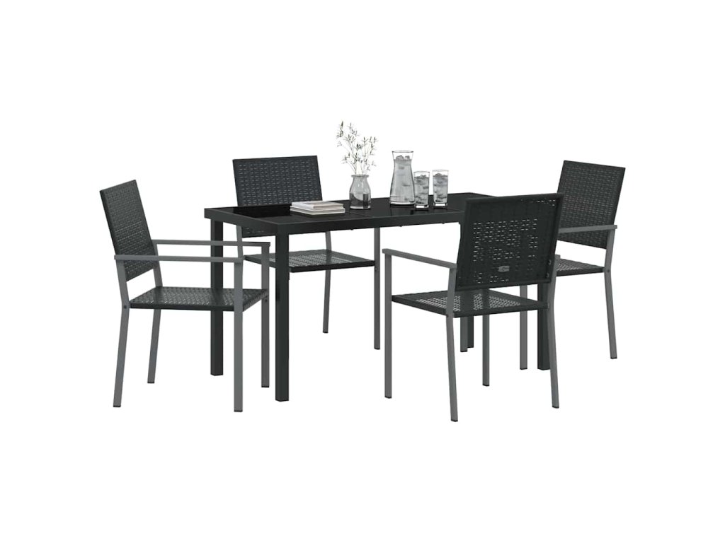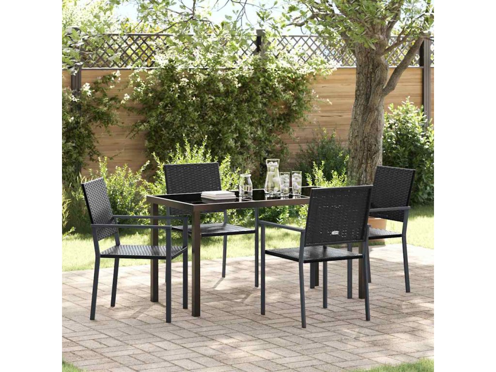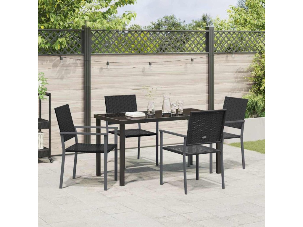- Stylový a moderní: Elegantní černý poly ratanový povrch těchto zahradních židlí jim dodává stylový vzhled, který se hodí do všech venkovních prostředí, ideální pro neformální setkání nebo intimní večeře.