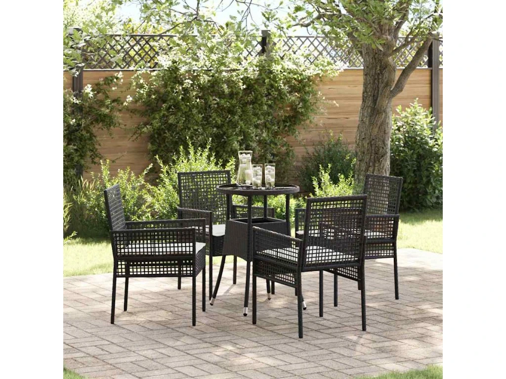 u003culu003eu003cliu003eOdolný materiál: Tento zahradní jídelní set je z kvalitního poly ratanu, co zvládne různý počasí a zajistí dlouhou životnost. Jeho UV ochrana brání vyblednutí na sluníčku.u003c/liu003eu003cliu003eStylový design: S hladkým, moderním vzhledem tento set přidá šmrnc do každého venkovního prostoru. Kombinace černé a krémové mu dodává elegance.u003c/liu003eu003cliu003ePohodlné sezení: Každá židle má polstrované podušky pro super komfort během jídla nebo sezení, a mají zip pro snadné čištění.u003c/liu003eu003cliu003eSnadná údržba: Udržovat ho v čistotě je snadný úkol. Pravidelná údržba a skladování uvnitř, když ho nepoužíváš, je jednoduchý způsob, jak prodloužit jeho životnost.u003c/liu003eu003cliu003eÚspora prostoru: Kulatý tvar stolu maximalizuje prostor a podporuje konverzaci mezi hosty, což je ideální pro intimní večeře.u003c/liu003eu003c/ulu003e- Počet položek: 5