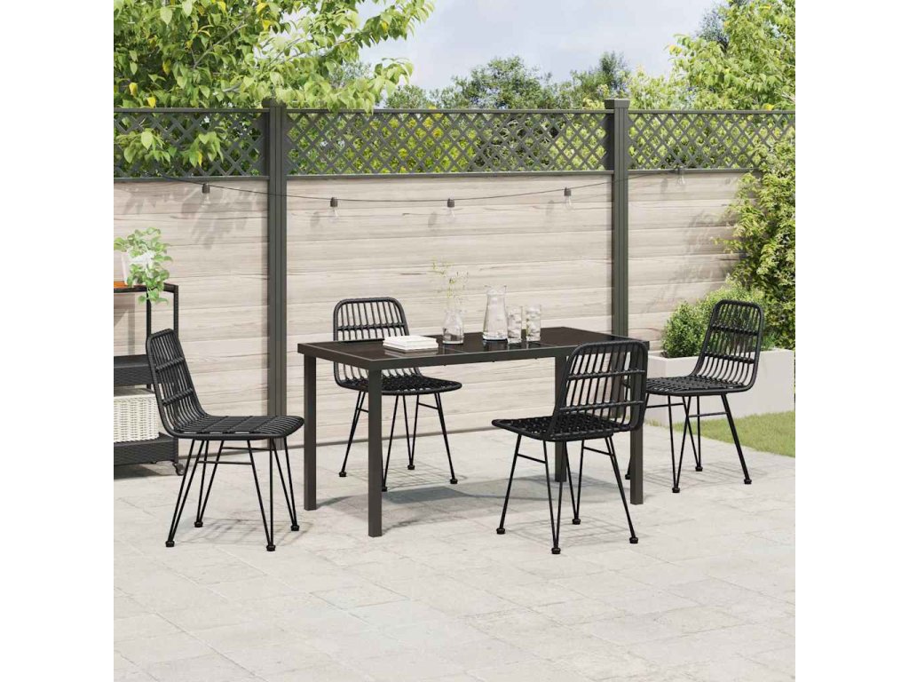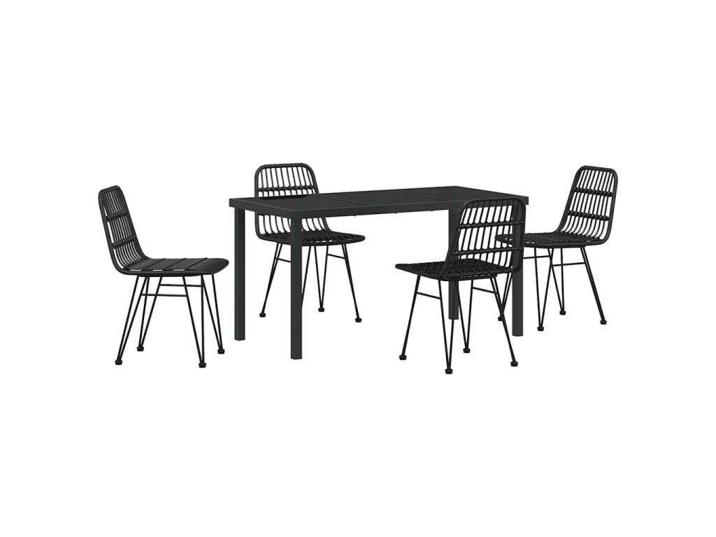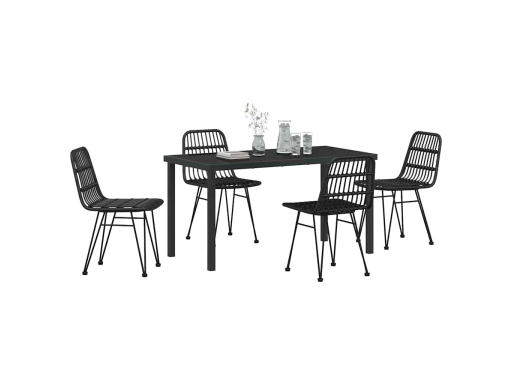 - Odolné materiály vůči počasí: Tato jídelní souprava je z kvalitních materiálů, jako je poly ratan a práškově lakovaná ocel, které zvládnou venkovní podmínky, včetně UV záření a vlhkosti. Díky tomu vypadá skvěle i po delším používání, takže vaše investice se vyplatí.