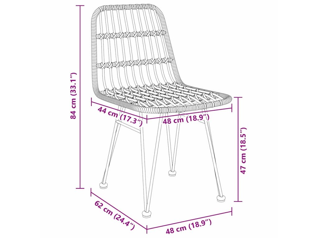 - 2 x Zahradní křeslo: 48 x 62 x 84 cm (D x Š x V)