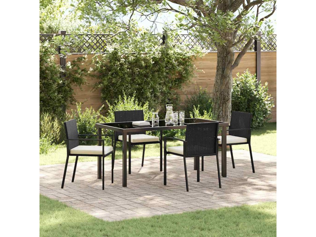 - Pohodlné Sezení Každá židle má pevné poly ratanové opěradlo a polstrované sedáky pokryté polyesterem. Polštáře mají zipy pro snadné sejmutí, když potřebuješ uklidit, akorát to udržuje vše svěží a pohodlné během venkovních party.