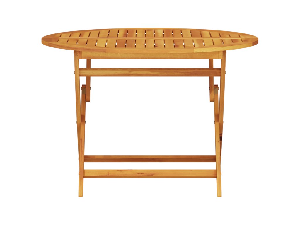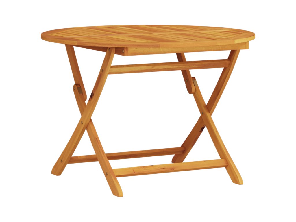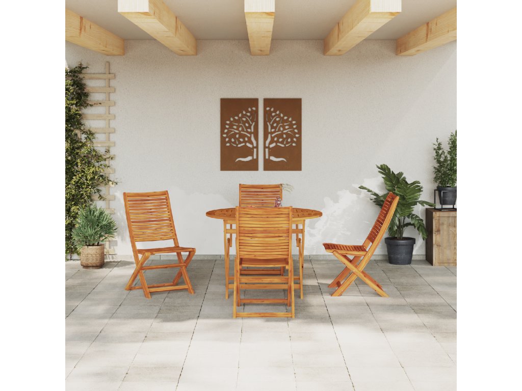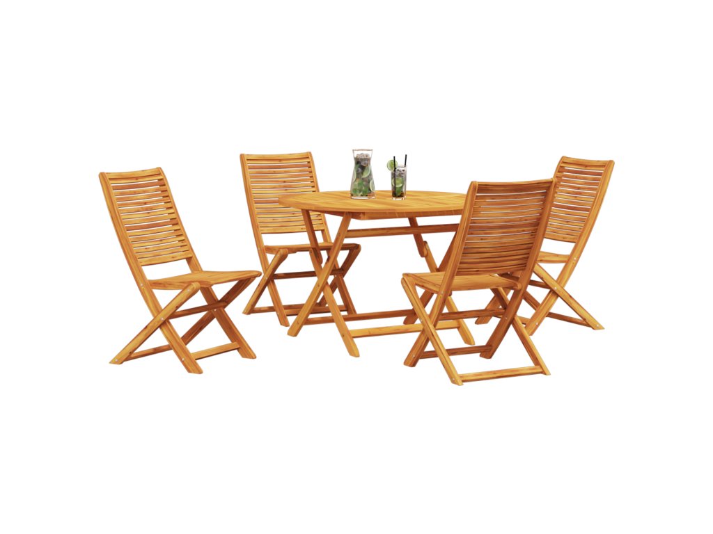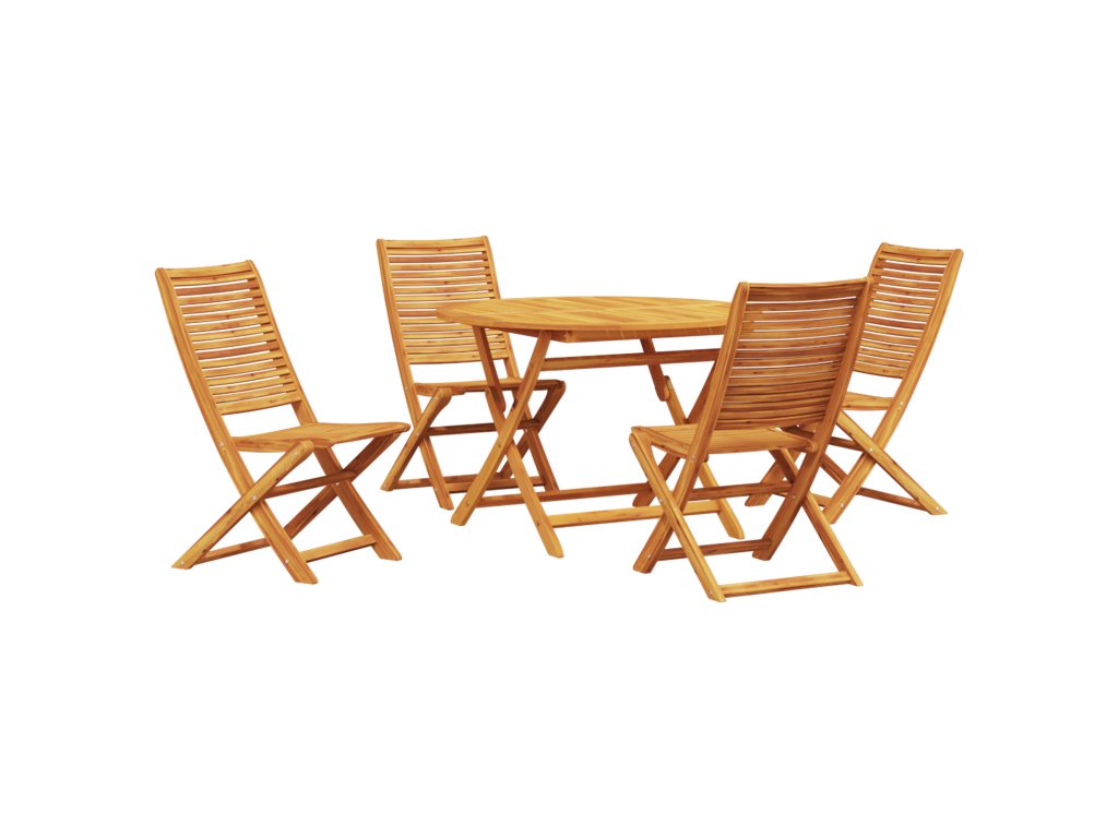 Tento cool skládací zahradní jídelní set je vyrobený z masivního akáciového dřeva, který je známý svou pevností a přírodní krásou. Obsahuje kulatý stůl a čtyři pohodlné židle, ideální do tvého dvorku nebo na patio, krásně se prolínající s přírodou.
