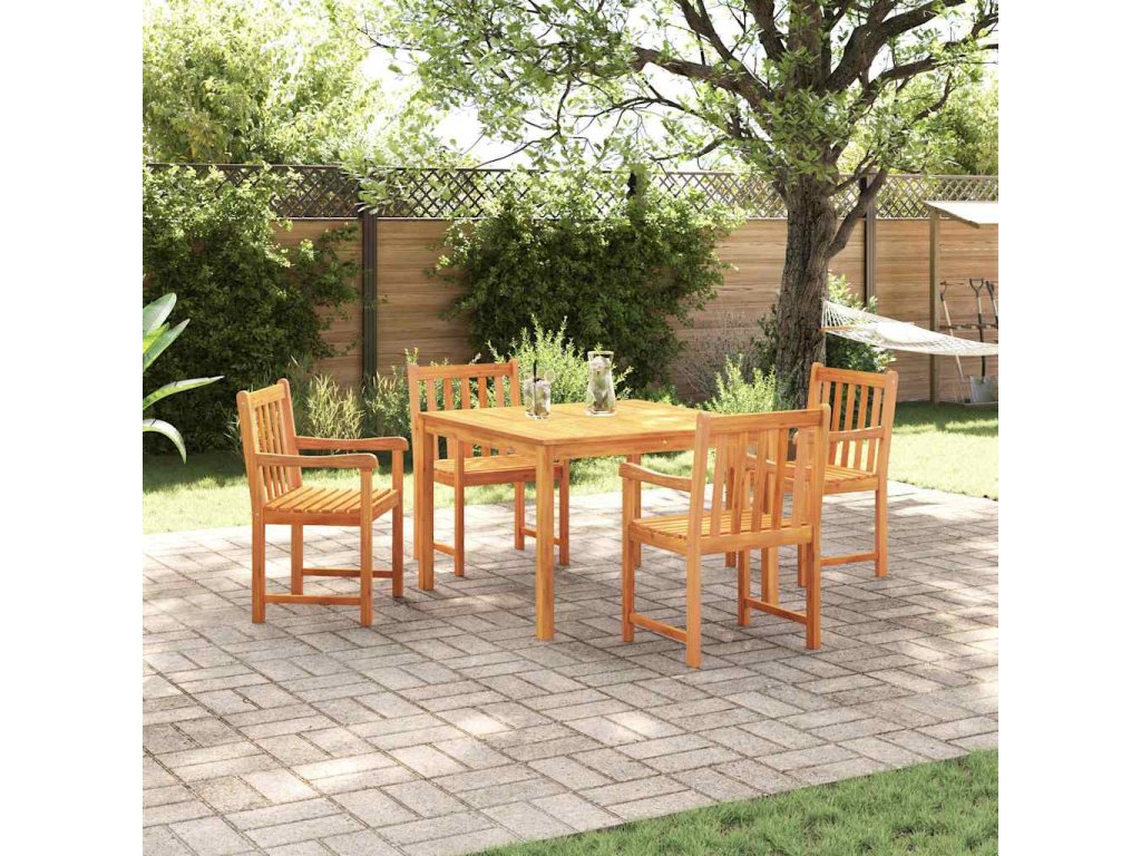 - Masivní akáciové dřevo: Tato jídelní souprava z prvotřídního masivního akáciového dřeva si udrží svůj vzhled a kvalitu bez ohledu na roční dobu. Akáciové dřevo je pevné a poskytne vám robustní strukturu pro spoustu venkovních jídel a vydrží roky.