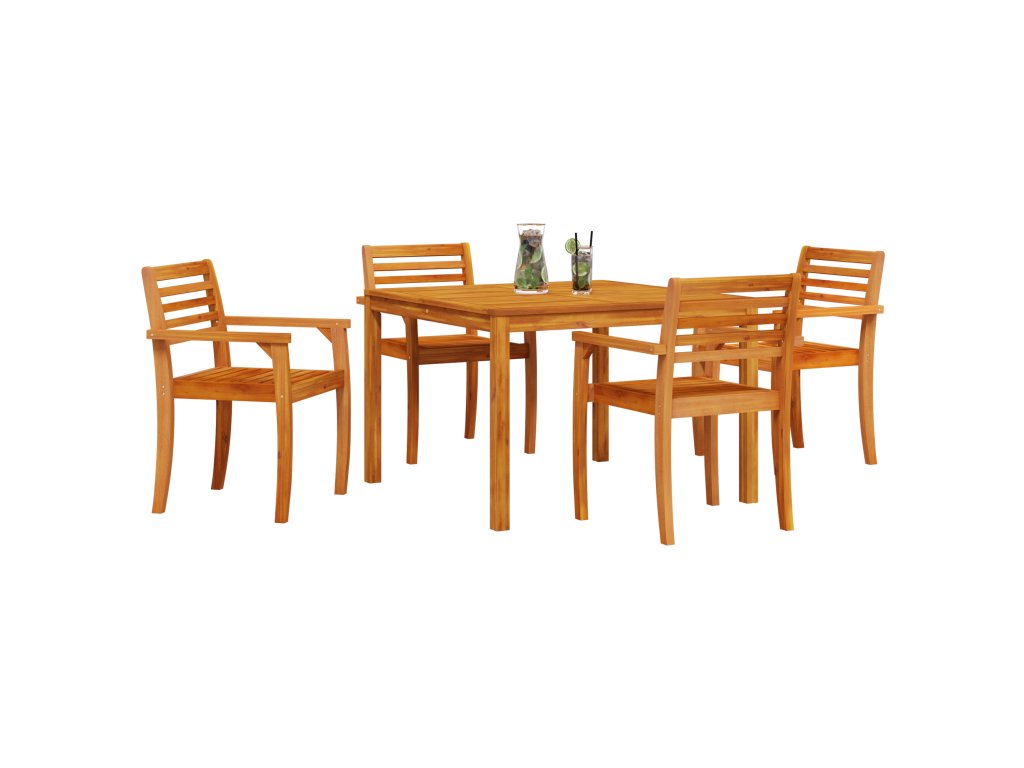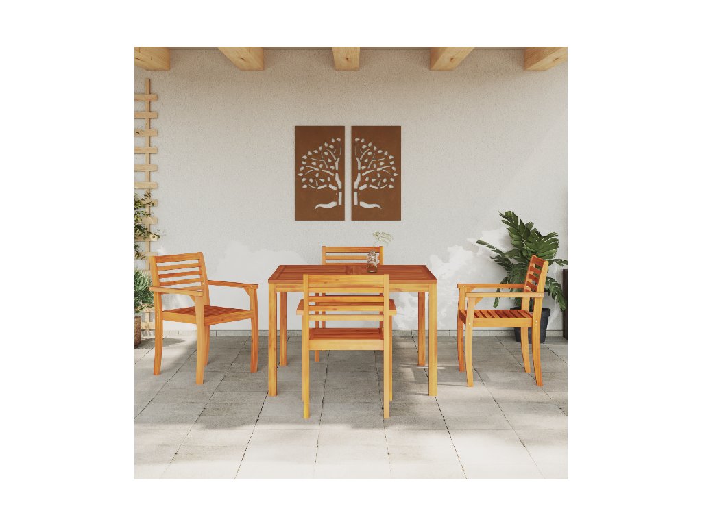 - Masivní akáciové dřevo: Kvalitní akáciové dřevo zaručuje, že tenhle jídelní set vydrží a zároveň ukazuje unikátní přírodní zrnění, což přidává na jeho kouzlu.