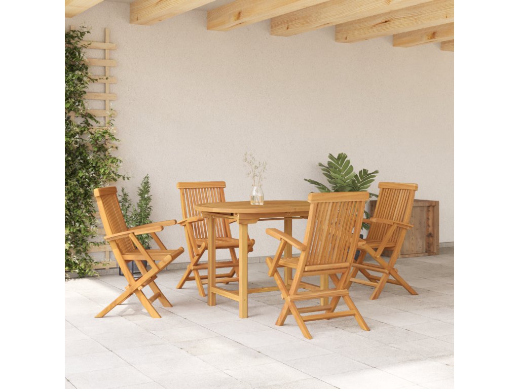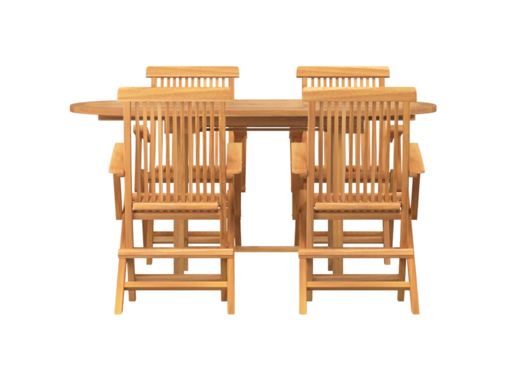 - Pečlivá Konstrukce: Vyrobeno z masivního teaku, tento jídelní set má silnou a atraktivní konstrukci. Kvalitní materiál zajišťuje stabilitu a trvanlivost, což ho činí vhodným na všechny venkovní akce.