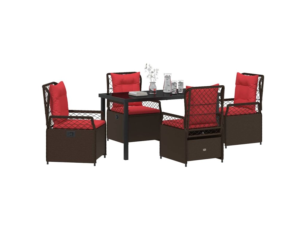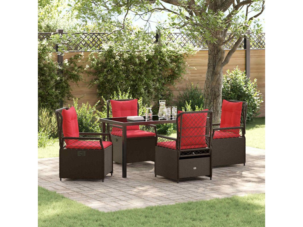 - Materiály: Hlavně z poly ratanu, tahle jídelní souprava dobře zvládá různý počasí, což ji dělá perfektní na léto. Skleněná deska dodává trošku elegance a skvěle ladí s moderním stylem. Silné ocelové prvky zajišťují stabilitu, takže zůstává stylová i při běžném používání.