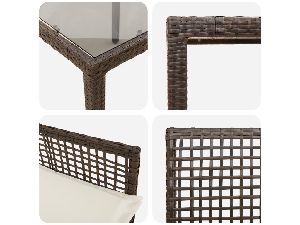 Tento moderní zahradní stůl pro 4 osoby je praktický a stylový, takže je to ideální místo pro vaše venkovní setkání. Jeho současný design, což zahrnuje elegantní ocelový rám a průhledný skleněný vršek, dodává šmrnc vaší terase nebo zahradě a vytváří příjemné místo pro rodinná jídla nebo lenošení.