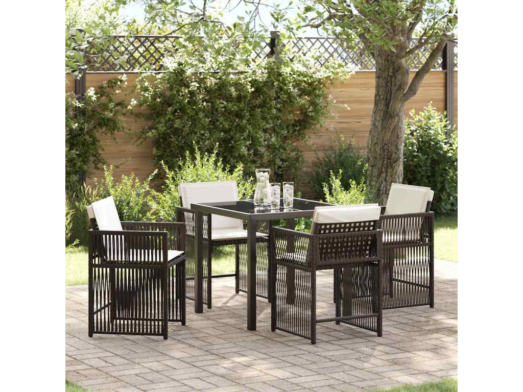 - Součásti: Sada obsahuje elegantní skleněný stůl, suitable for co se snadno čistí po jídle. Má pohodlná opěradla a opěrky z poly ratanu navržené pro lepší oporu během uvolněných večeří. Pevné nohy ti zaručí stabilitu na různých površích, zatímco měkké polyesterové výplně přidávají pohodlí během každého jídla.