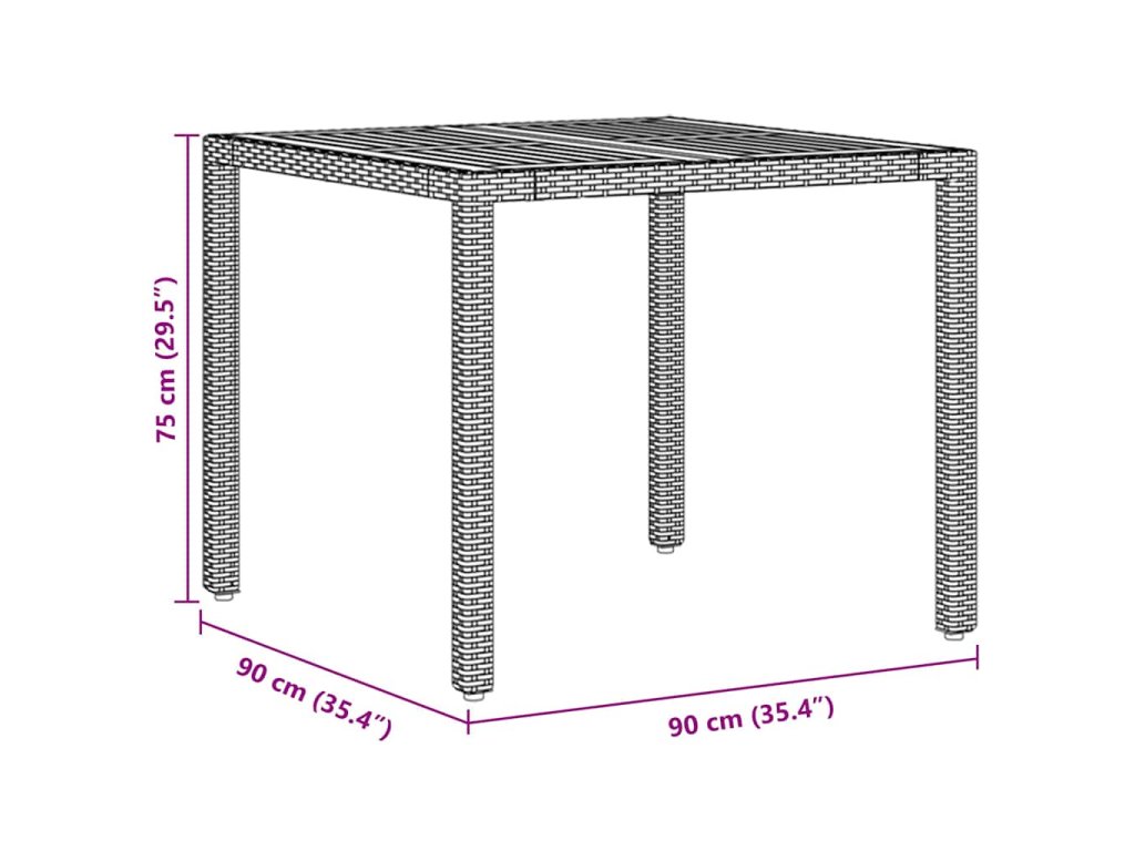 - Materiály: Tato zahradní jídelní souprava z polyratanu má hladký povrch, který spojuje moderní styl s trvanlivostí. Polyratan je vybrán pro svou odolnost vůči špatnému počasí, takže si udržuje vzhled a strukturu i v různých ročních obdobích. Tento materiál dodává stylový, moderní dojem, zatímco je flexibilní a zabraňuje prasklinám nebo zlomeninám.