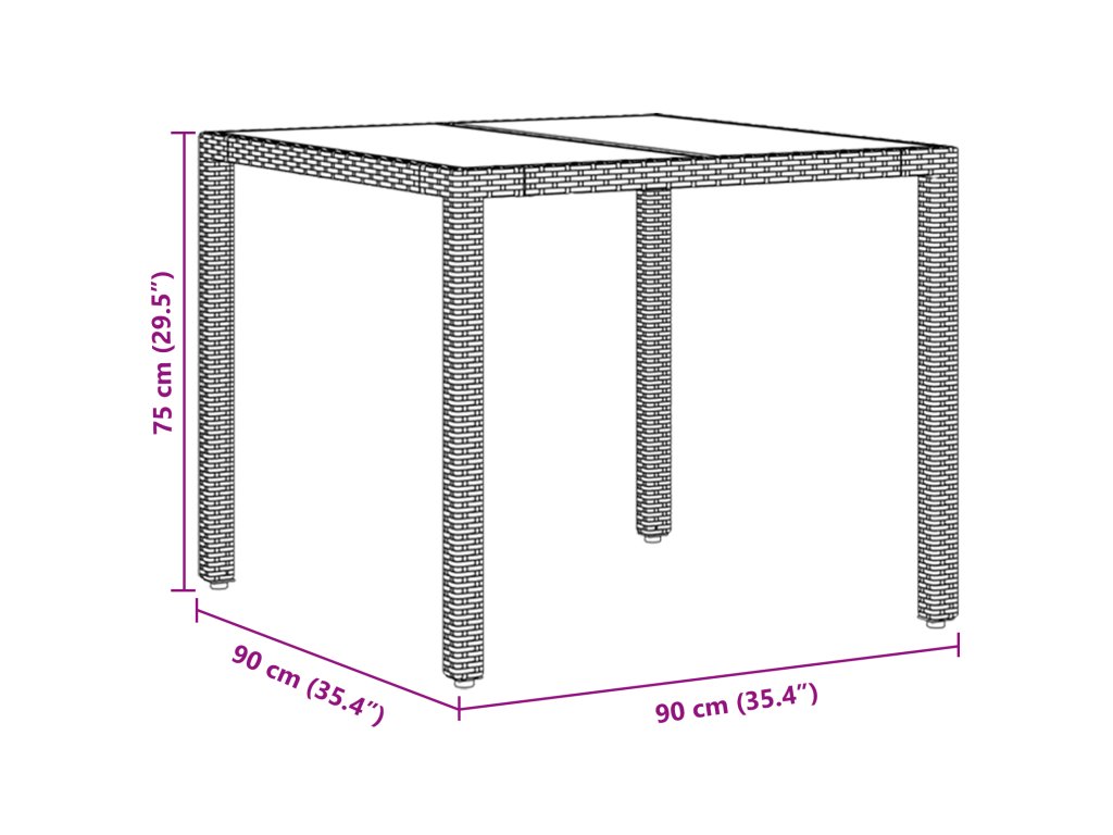 Tento čtvercový zahradní stůl je elegantní a praktický kus, ideální do venkovních prostor. Poskytuje skvělé místo pro příjemné stolování. S moderním designem spojuje funkčnost a krásu – má tvrzenou skleněnou desku a pevný rám z práškově lakované oceli, takže je jak odolný, tak i stylový pro váš balkon nebo terasu.