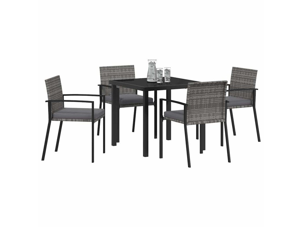 - Pohodlné Sezení Každá židle má pevné poly ratanové opěradlo a polstrované sedáky pokryté polyesterem. Polštáře mají zipy pro snadné sejmutí, když potřebuješ uklidit, akorát to udržuje vše svěží a pohodlné během venkovních party.
