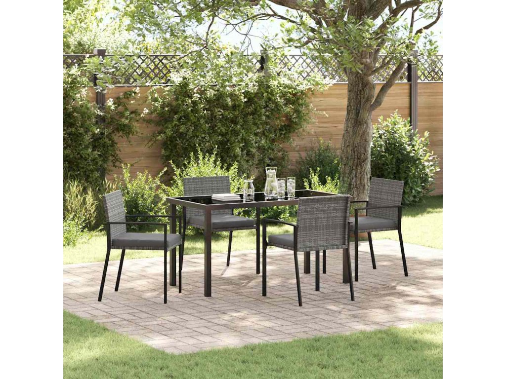 - Pohodlné Sezení Každá židle má pevné poly ratanové opěradlo a polstrované sedáky pokryté polyesterem. Polštáře mají zipy pro snadné sejmutí, když potřebuješ uklidit, akorát to udržuje vše svěží a pohodlné během venkovních party.