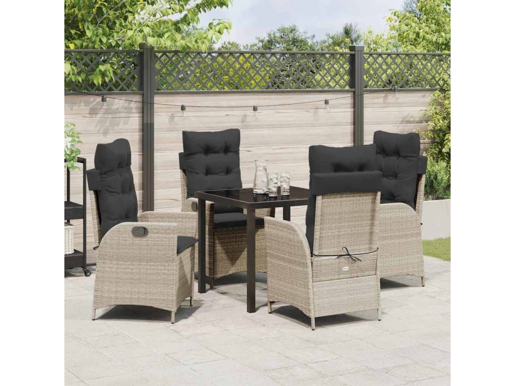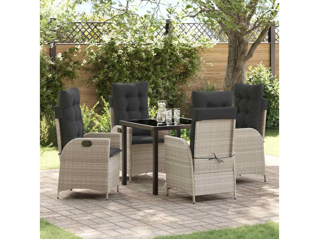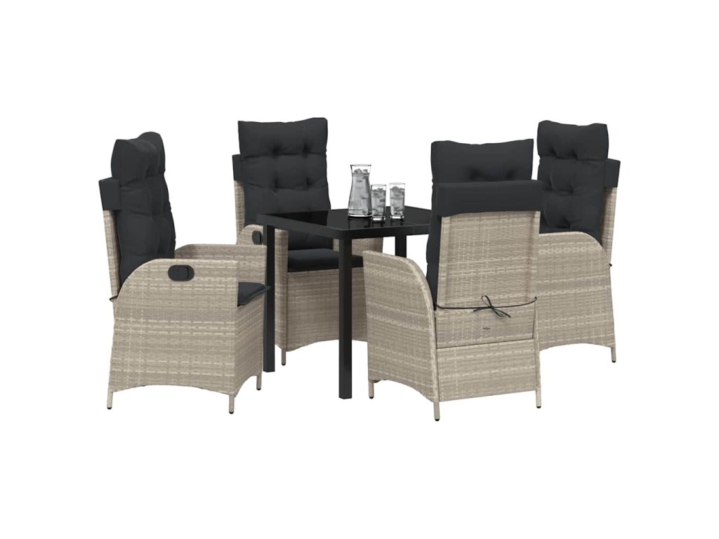 - Odolná konstrukce: Moderní zahradní jídelní set se pyšní pečlivou kombinací materiálů, které odolávají různým povětrnostním vlivům. Polyratan dodává příjemnou texturu a skvělou ochranu proti UV záření a vlhkosti, a ocelový rám zajišťuje stabilitu a dlouhá léta bezstarostného užívání.