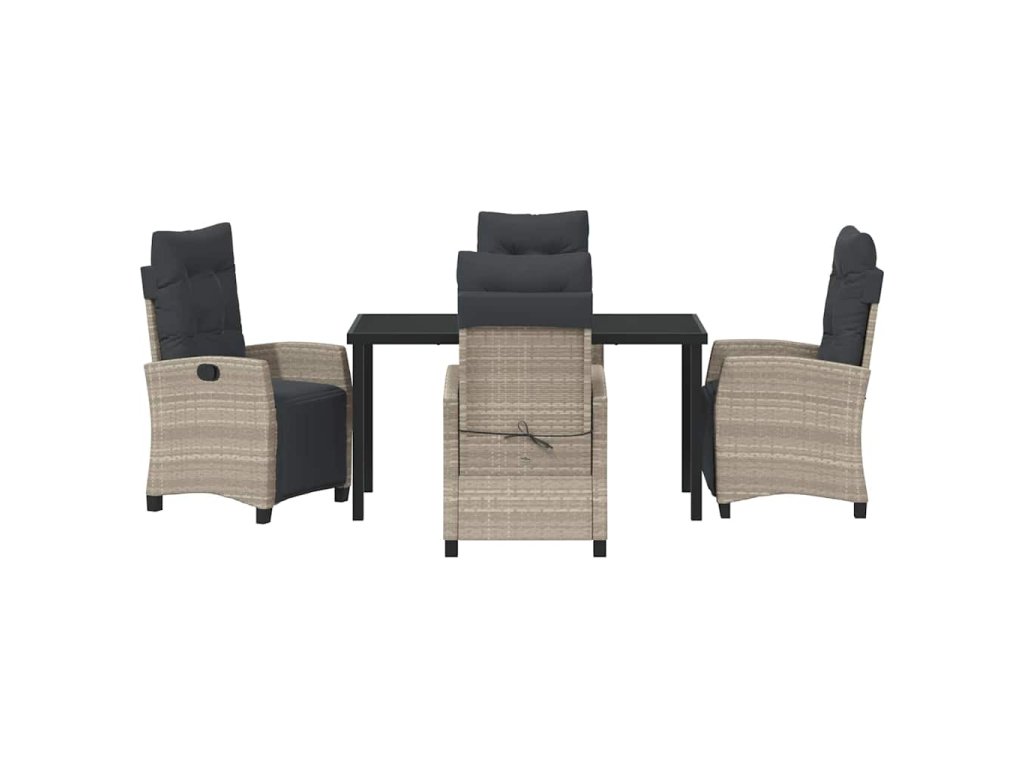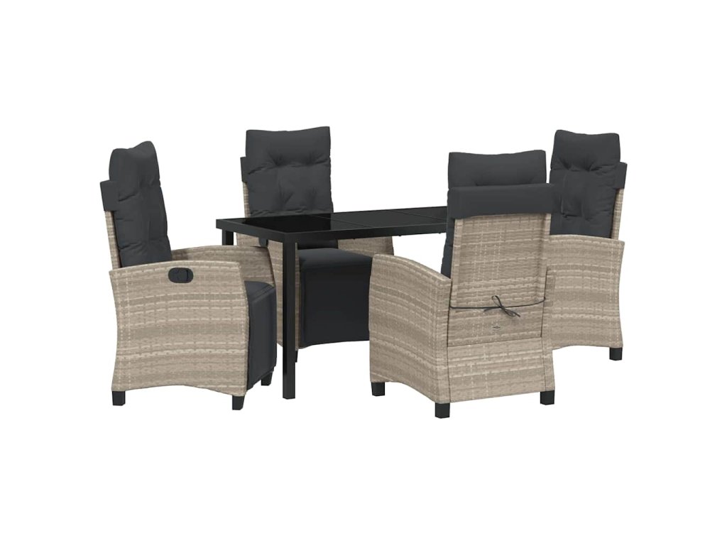 - Materiály: Set je vyroben z poly ratanu a odolné oceli. Poly ratan přináší moderní tkanou texturu, která kombinuje estetiku a odolnost, a ocelová konstrukce zajišťuje stabilitu a výdrž během proměn počasí.