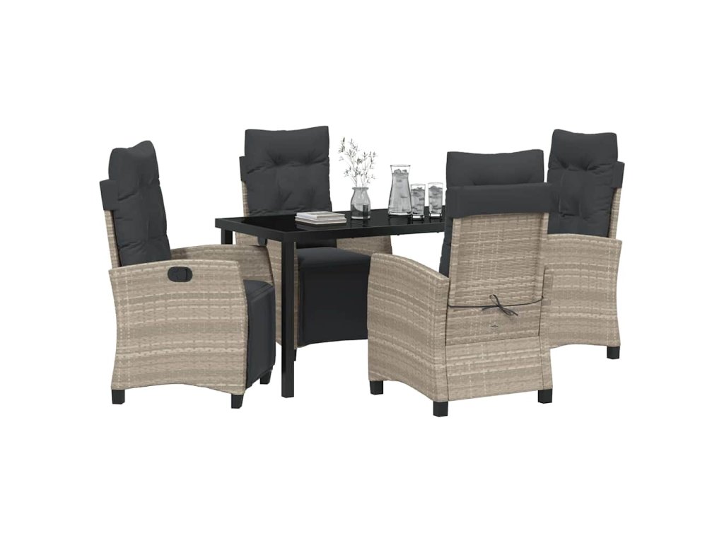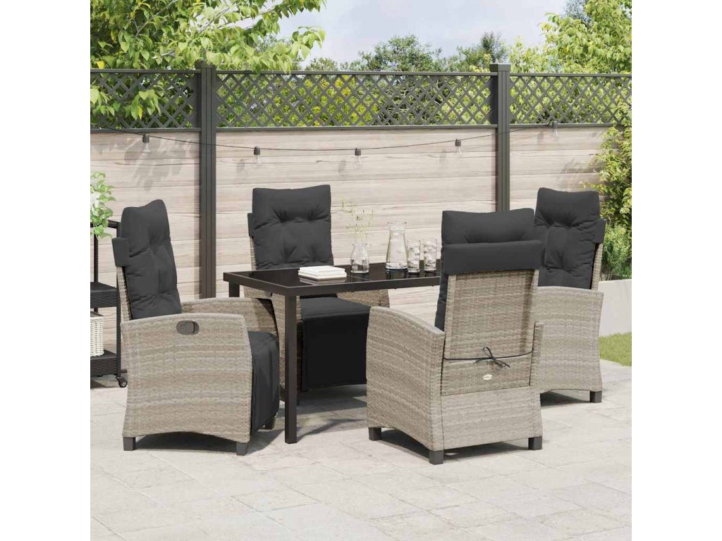 Tento moderní zahradní jídelní set dodá každé zahradě nebo terase eleganci a přitom zachovává jednoduchost a funkčnost. Je určen pro venkovní využití, skvěle se hodí k aktuálním trendům a nabízí perfektní místo pro letní setkání. Set má hezký profil s odolností vůči počasí, ideální pro jídlo, zábavu nebo relaxaci. Kombinace různých materiálů dodává nádech elegance a perfektně zapadá do přírodního prostředí, zatímco vytváří útulnou atmosféru pro všechny.