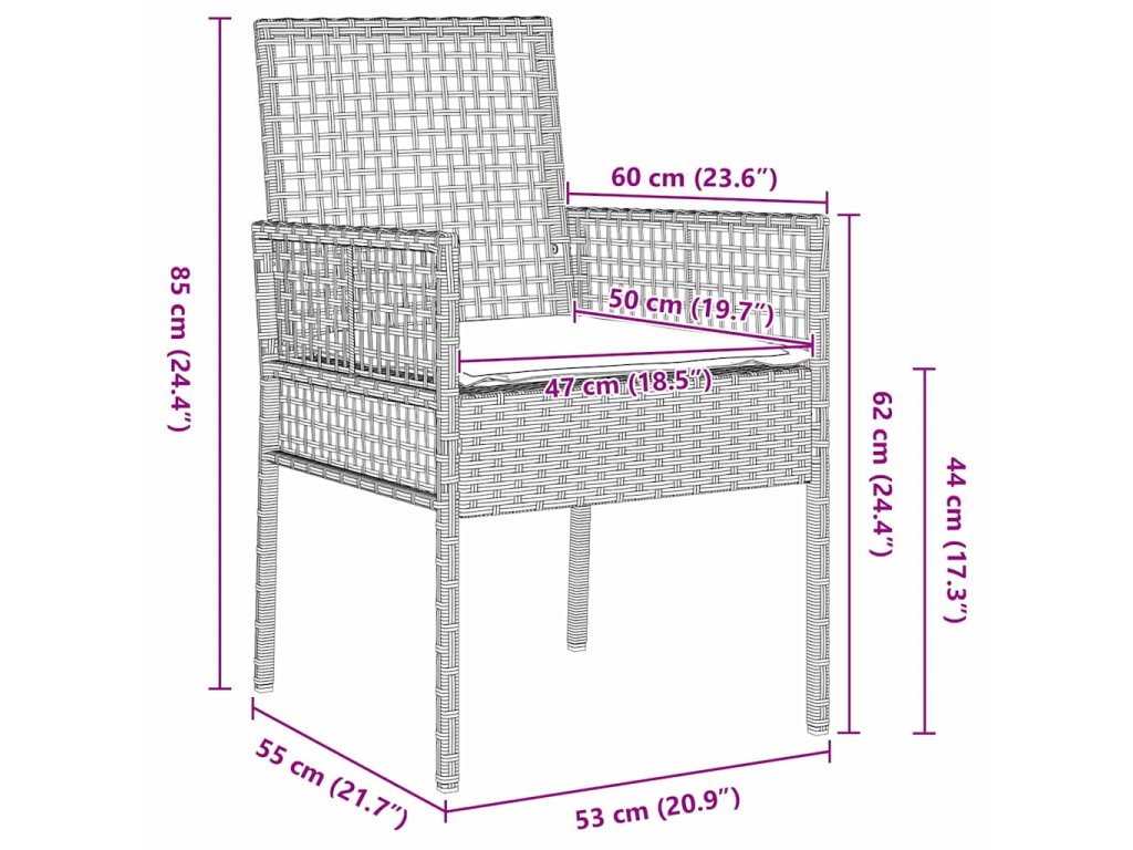 - 2 x zahradní židle: 53 x 60 x 85 cm (D x Š x V)