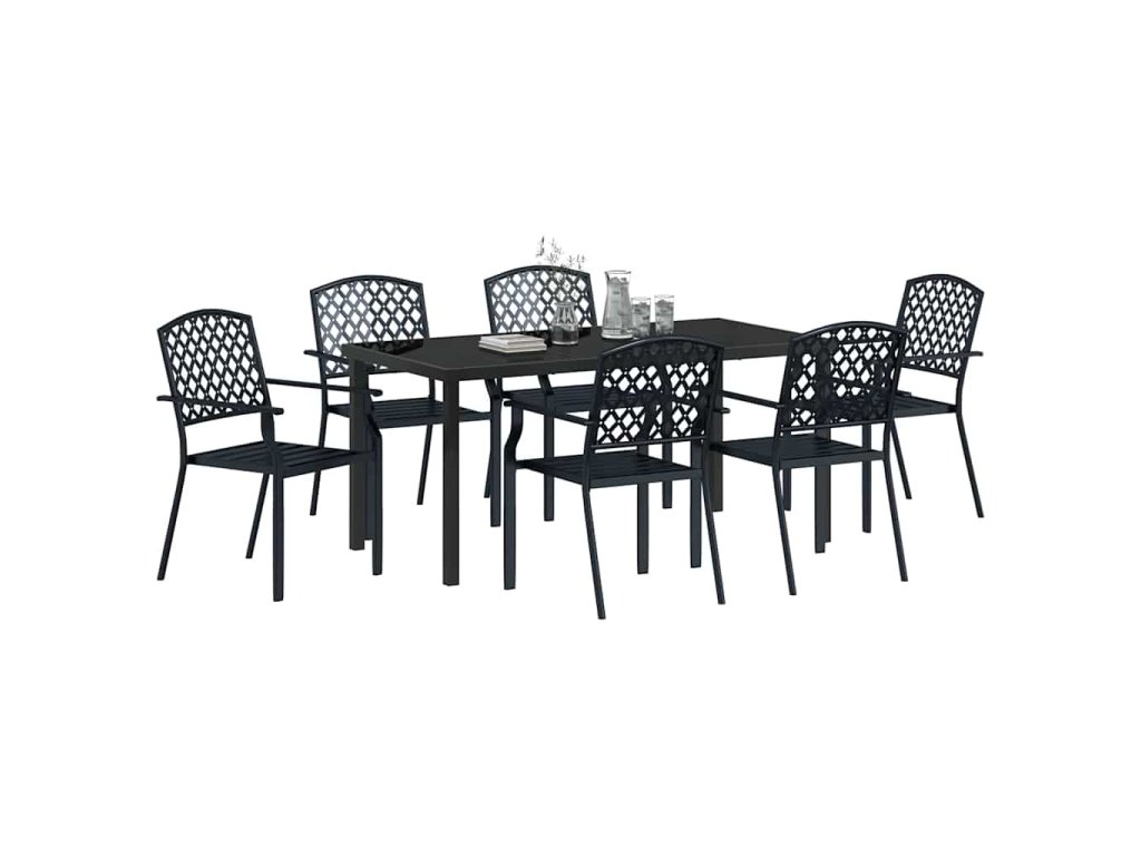 - Práškově lakovaná ocel: Dává setu pevnost a odolnost vůči počasí, je to spolehlivá struktura, co vydrží. Ochranný povrch navíc ještě zvyšuje odolnost oceli, aby se neničila, a dělá z ní skvělou volbu na venek.