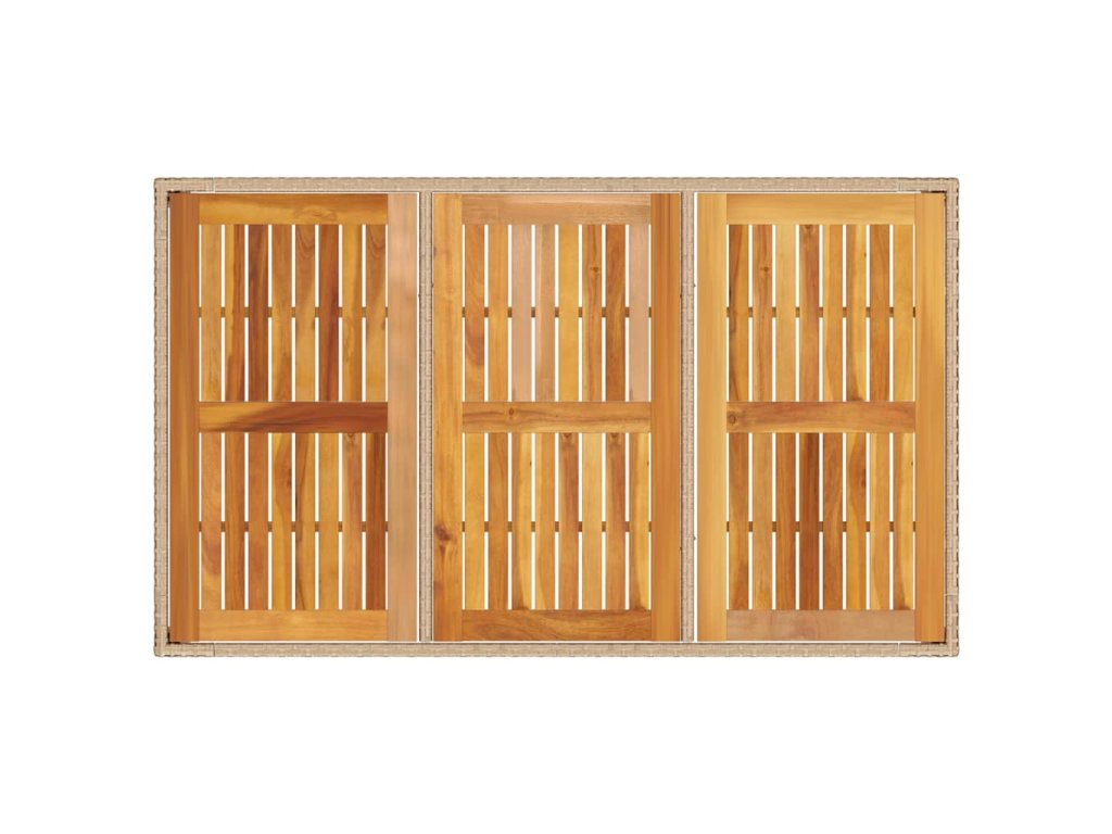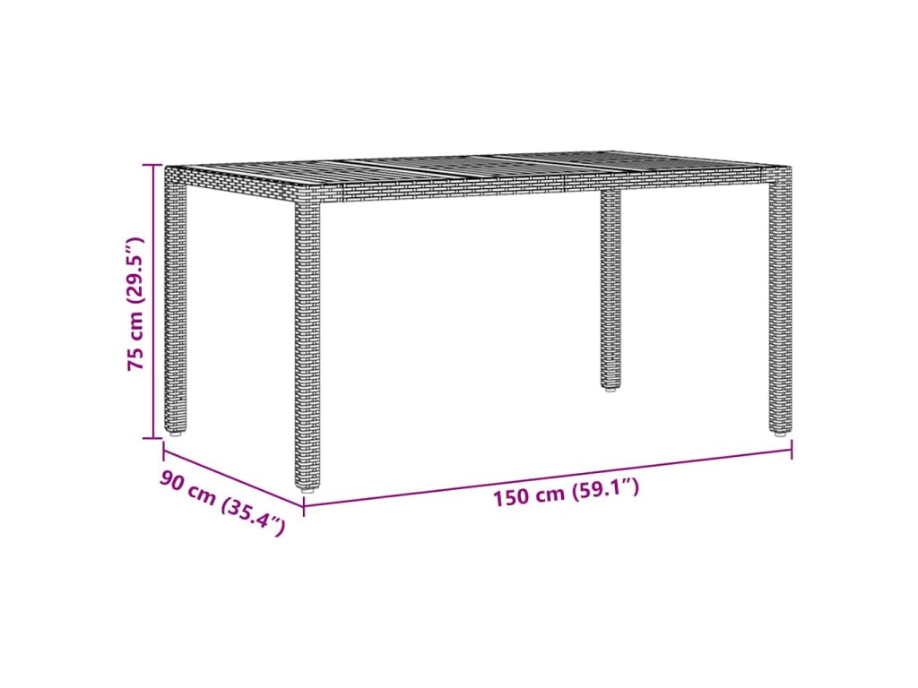 - Materiály: Tato zahradní jídelní souprava z polyratanu má hladký povrch, který spojuje moderní styl s trvanlivostí. Polyratan je vybrán pro svou odolnost vůči špatnému počasí, takže si udržuje vzhled a strukturu i v různých ročních obdobích. Tento materiál dodává stylový, moderní dojem, zatímco je flexibilní a zabraňuje prasklinám nebo zlomeninám.