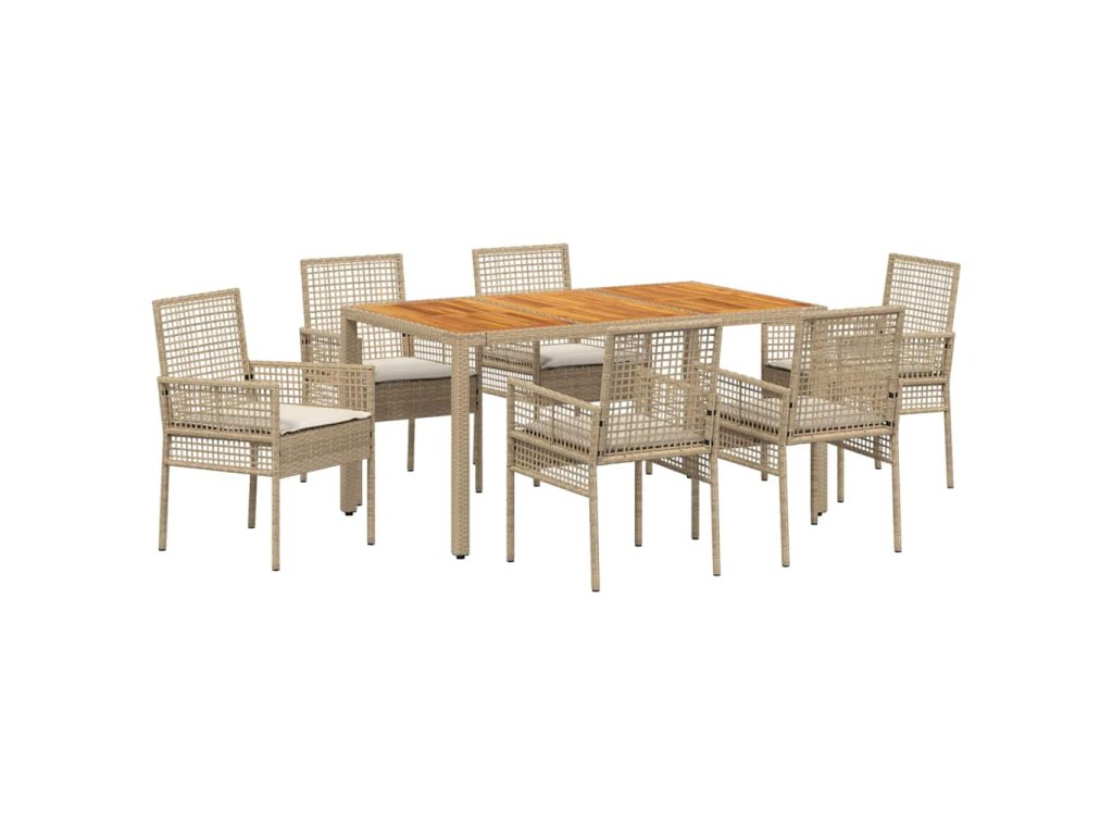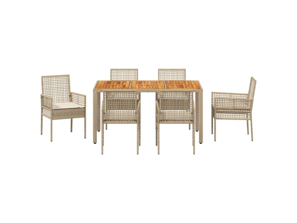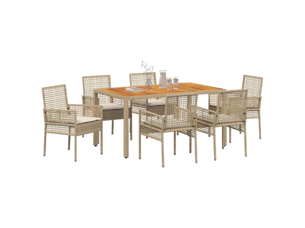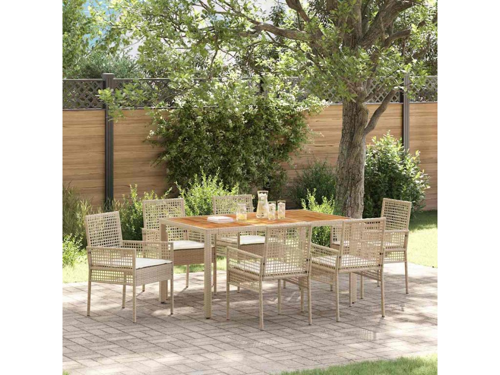 - Součásti: Jídelní souprava má velký stůl s pevným polyratanovým vrchem, který nabízí dostatek místa pro jídlo i zábavu. Každá židle je navržená tak, aby byla pohodlná, abyste si mohli užívat dlouhé chvíle s rodinou a kamarády. Všechny díly spolu tvoří krásnou kombinaci stylu a praktičnosti pro vaši venkovní jídelní zónu.