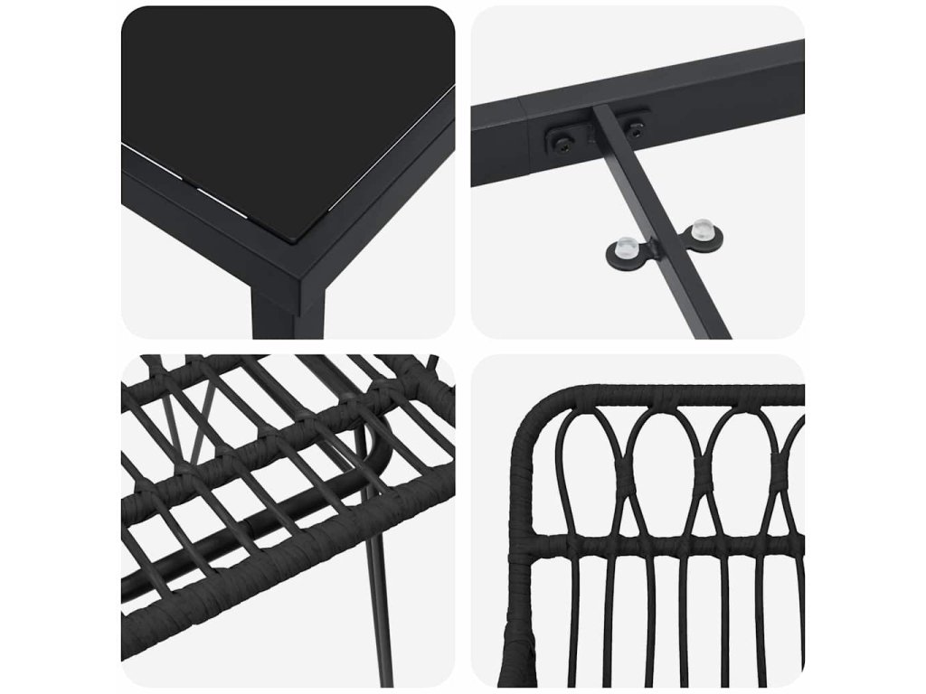 - Prémiové materiály Zahradní jídelna vyrobená z poly ratanu na sedáky a opěrky je odolná a pohodlná. Ocelový rám z práškově lakovaného kovu zajišťuje robustnost a spolehlivé použití venku. Materiály byly vybrány pro dlouhou životnost, což vám dává klid na duši při venkovním užívání.