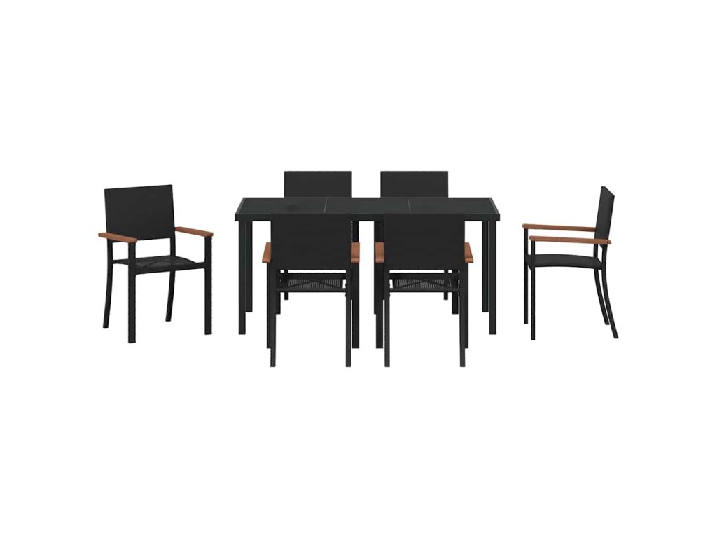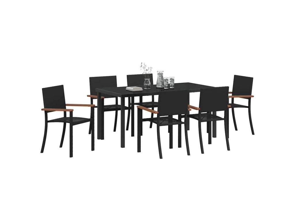 - Materiály: Sada z prémiového poly ratanu zaručuje elegantní a moderní vzhled. Tenhle materiál je vyrobený tak, aby odolal UV záření a různým povětrnostním podmínkám, takže je to skvělá volba na dlouhé venkovní používání. Tvrzené sklo na stole poskytuje stabilní plochu pro jídelní zážitky a přidává na atraktivitě celého setu.