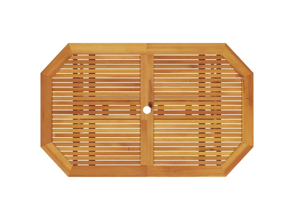 Tato rustikální zahradní jídelní sada přináší kouzelný nádech do vašeho venkovního obytného prostoru, bez námahy kombinuje funkčnost s rustikální elegancí. S desetiúhelníkovým tvarem se sada jistě hodí do různých venkovních prostředí. Je ideální pro venkovní stolování, poskytuje sezení pro rodiny a přátele, zatímco její přírodní tóny zdůrazňují její jednoduchou krásu a přizpůsobivost. Pevné akáciové dřevo je ideální pro použití v zahradě nebo na terase, což mu umožňuje odolávat sezónním změnám, což ho dělá jak praktickým, tak esteticky příjemným.