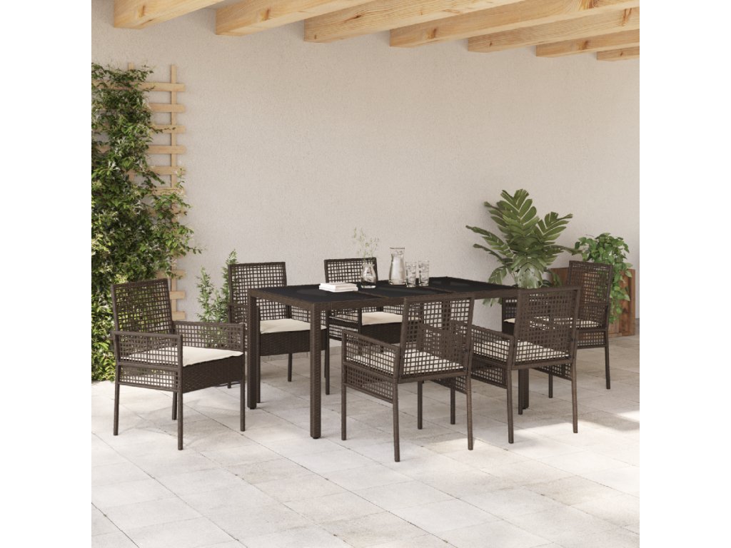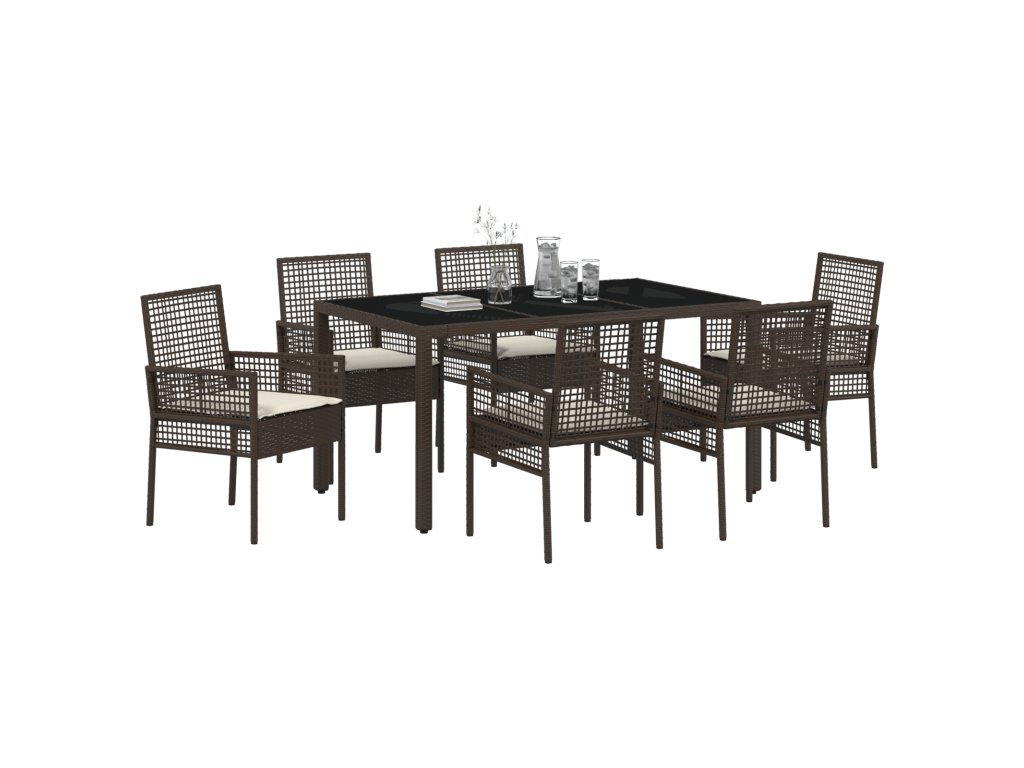 Tato moderní obdélníková jídelní souprava je ideální pro venkovní jídlo a setkání a spojuje styl s praktičností. Je vyrobená z odolného, UV-odolného polyratanu a elegantní skleněné plochy, dodává současný dotek vaší terase nebo zahradě, podporující relaxaci a užívání si.