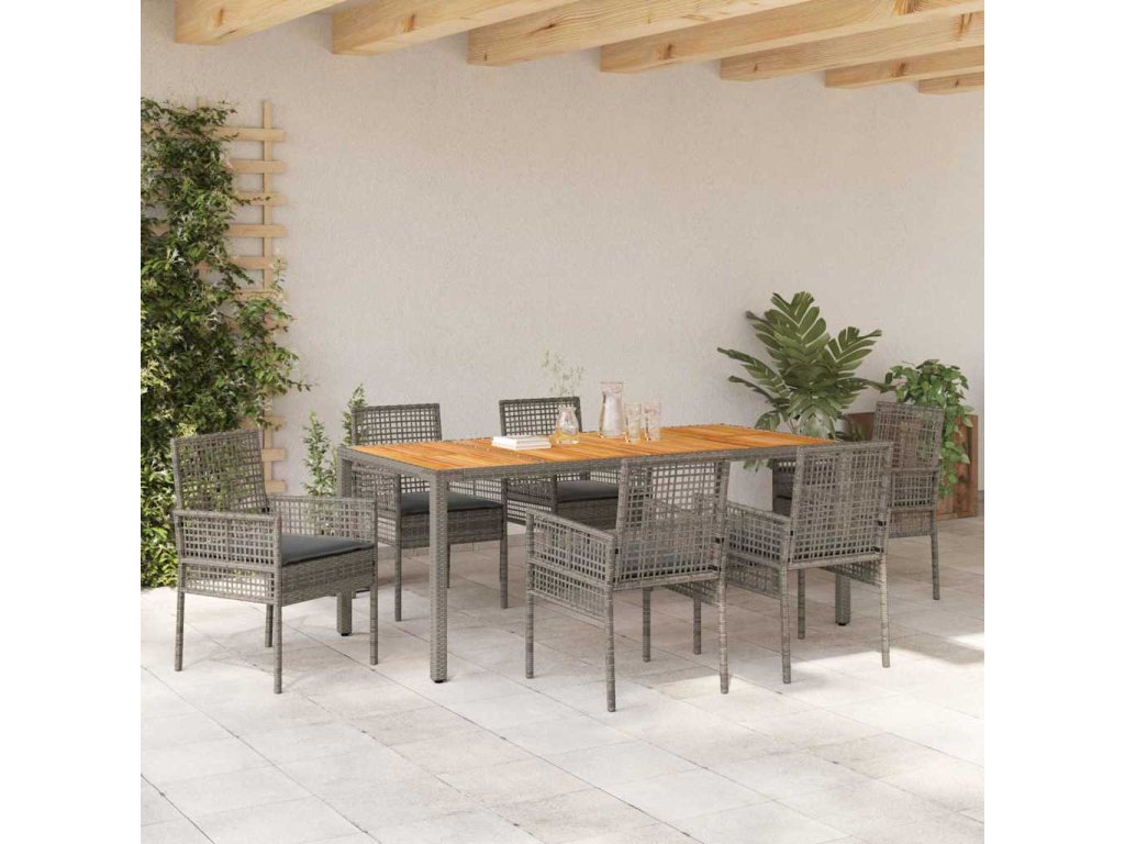 Tahleta zahradní jídelní souprava spojuje moderní design s poctivou funkčností, takže bude hvězdou každého venkovního setkání. Je stvořená pro venkovní použití a nabízí elegantní spojení stylu a pohodlí. S polyratanovým šarmem přináší lehkou atmosféru, která přesně zapadne do zahrad, teras nebo verand. Je ideální pro ty, suitable for co chtějí kombinovat styl a praktičnost, a dává vám flexibilní prostor na pohodové jídlo s kamarády venku.