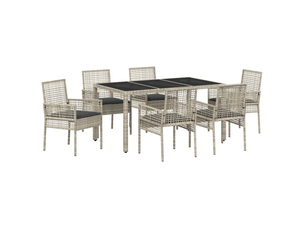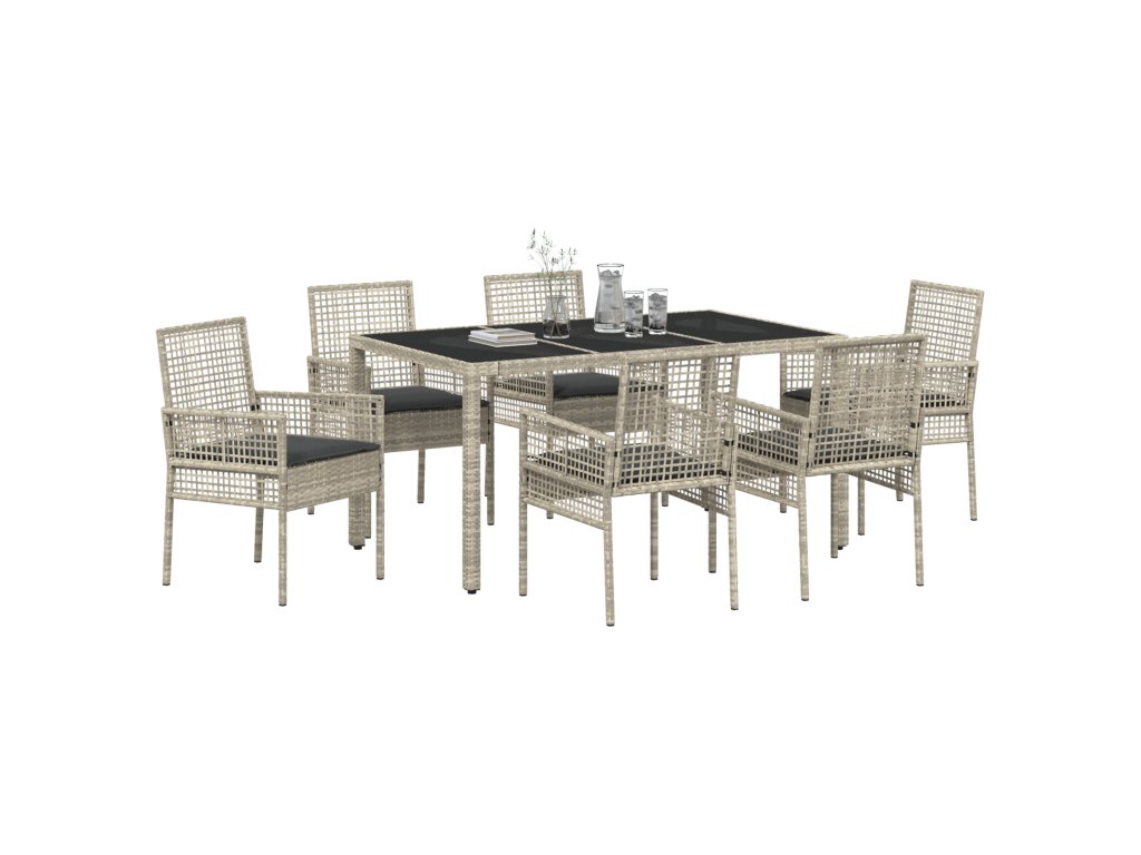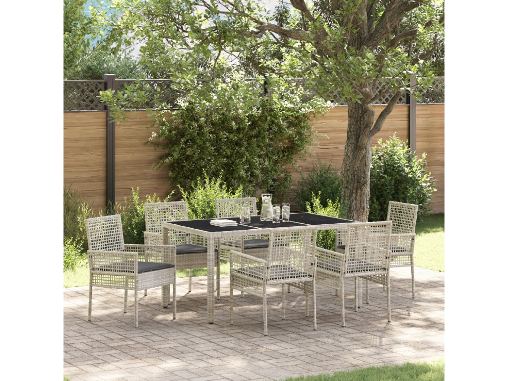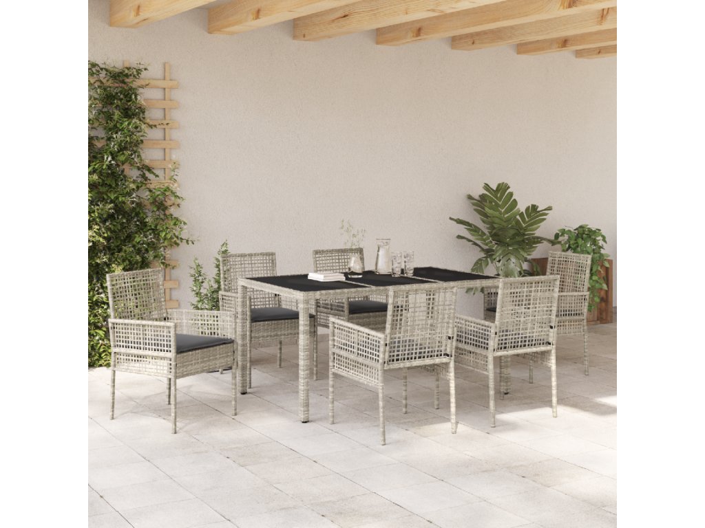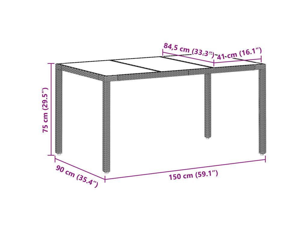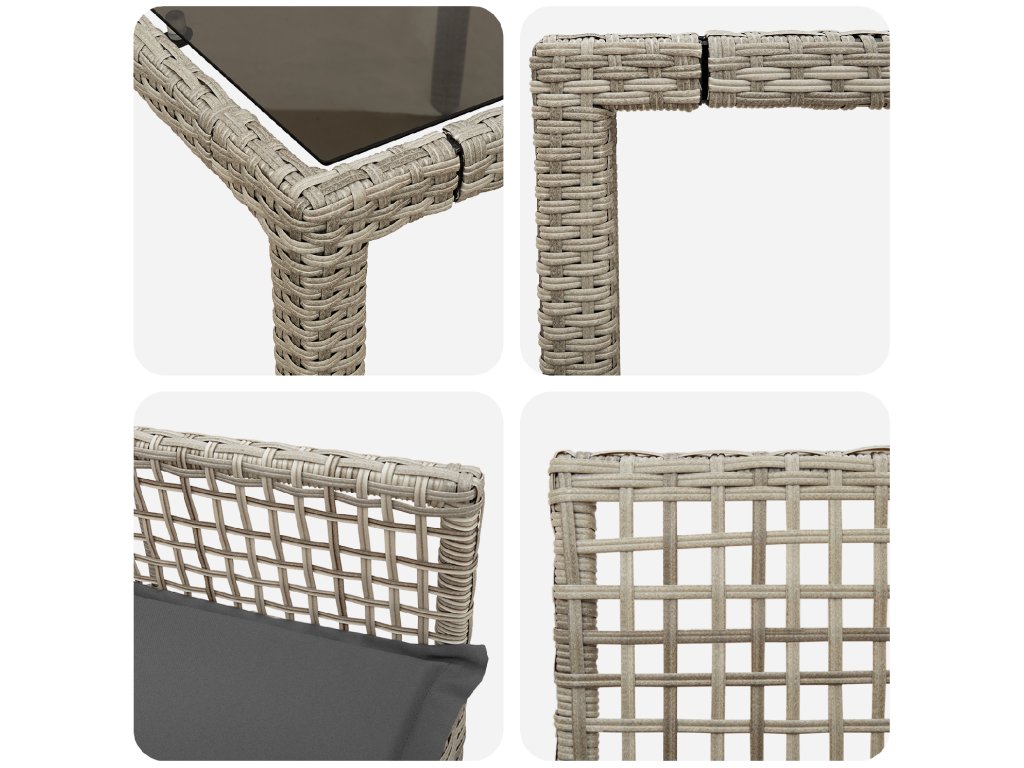 Tenhle světle šedý zahradní jídelní stůl je perfektní doplněk pro jakýkoli venkovní prostor, který tě okouzlí svým krásným poly ratanem a tvrzeným sklem. Ideální pro setkání, spojuje rodinu a přátele a vytváří příjemnou atmosféru pro jídla a kávové chvilky, ať už na terase, balkonu nebo v zahradě.