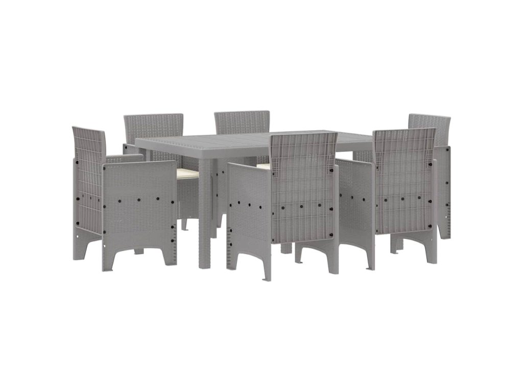 - Materiály: Jídelní souprava je vyrobena z kvalitního poly ratanu, materiálu, který je známý svou odolností a krásou. Je navržen tak, aby byl odolný proti UV záření, takže si udrží svůj vzhled dlouho. Texturovaný povrch dělá užívání skvělým zážitkem a působí moderně.