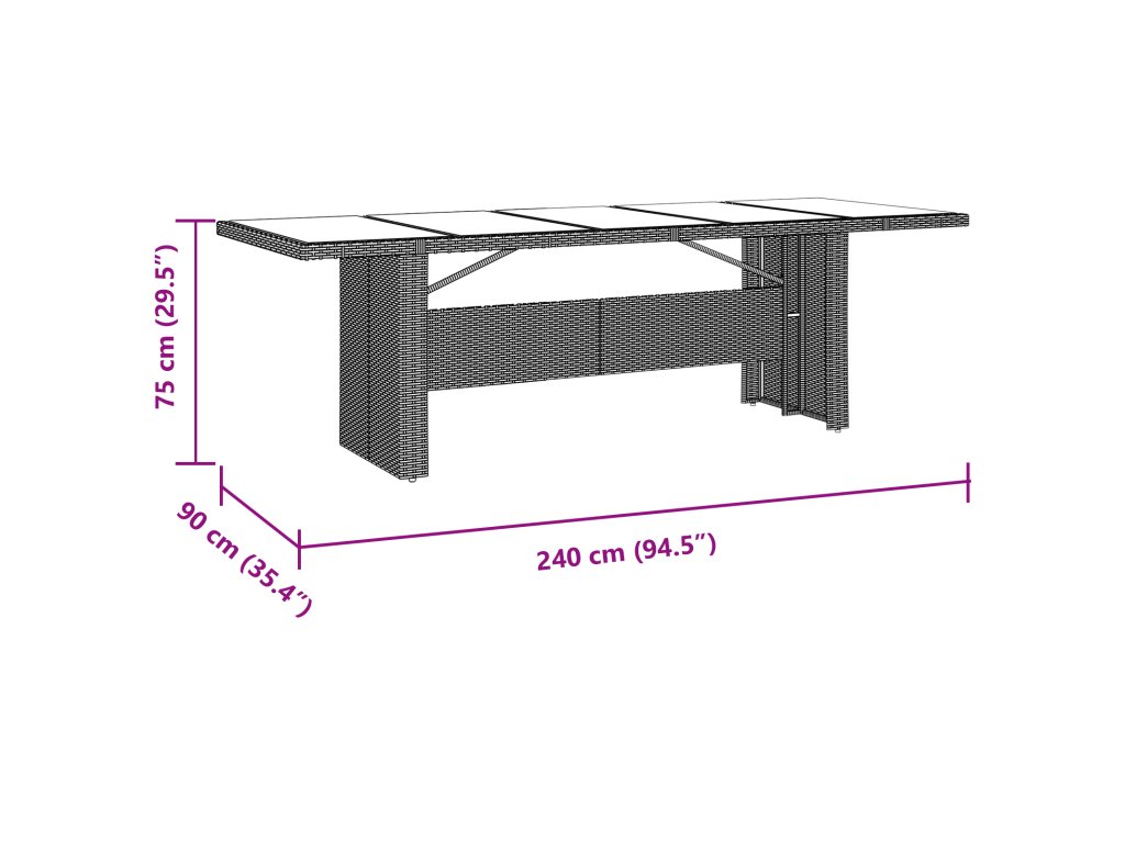 Tento venkovní jídelní stůl se skleněnou deskou má super moderní design, který obohatí každou zahradu a udělá z něj skvělý kousek pro rodinné sešlosti nebo oslavy. Chytrá kombinace odolných materiálů nabízí praktickou a stylovou stránku, vytváří komfortní atmosféru na stolování venku.