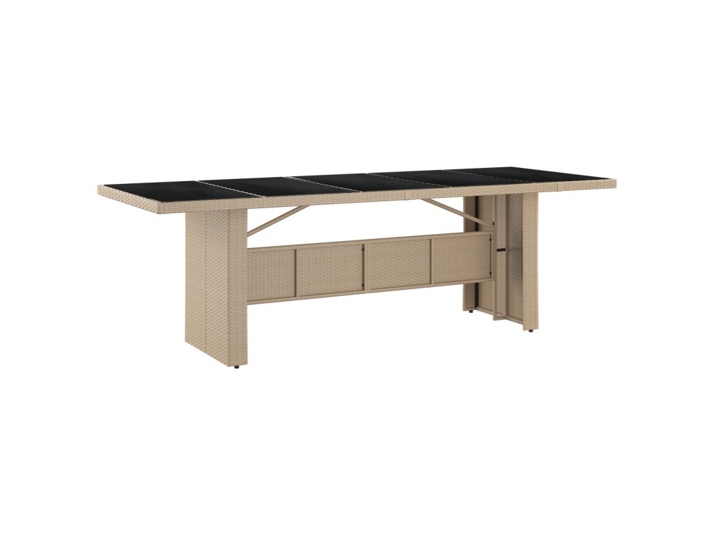 - Odolný design proti povětrnostním vlivům: Kombinace poly ratanu a tvrzeného skla dělá tento stůl odolný vůči dešti i UV záření.