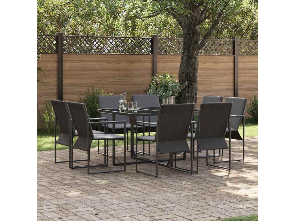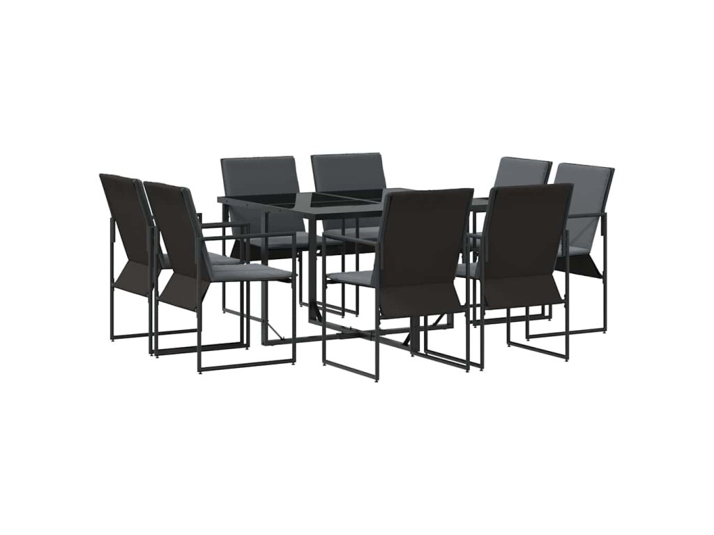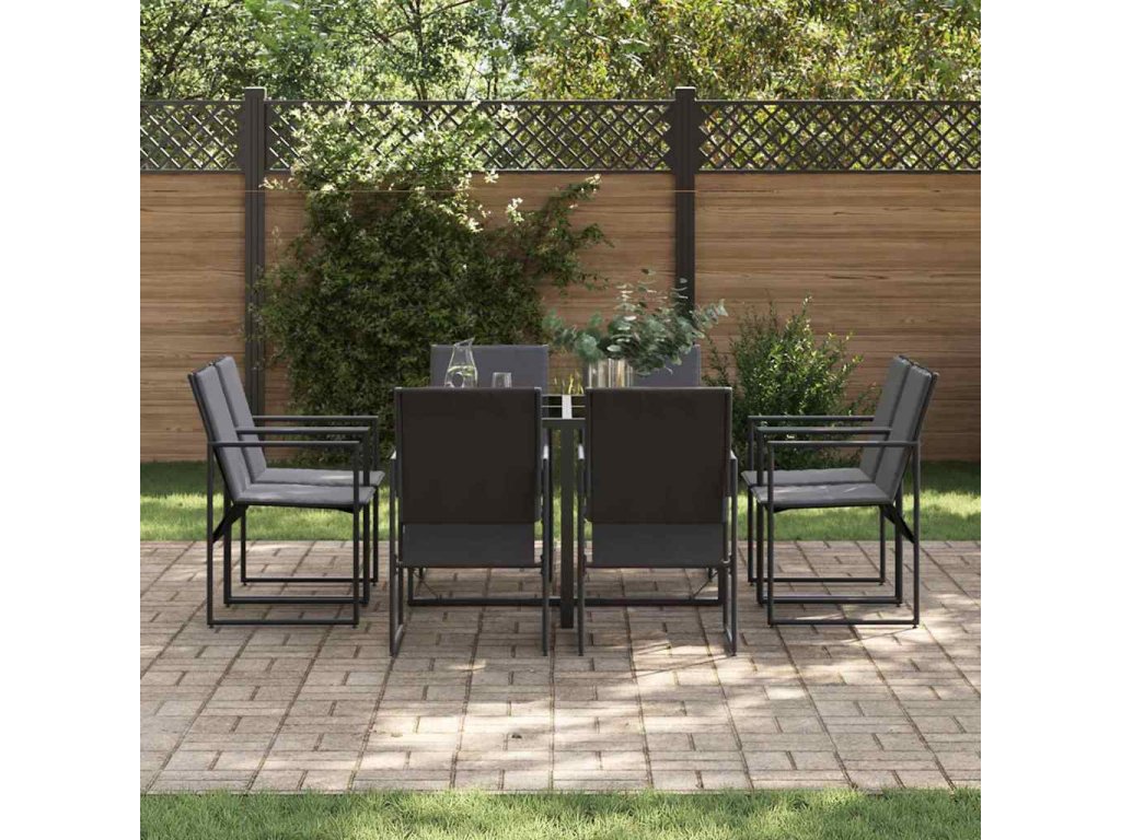 Tahle moderní zahradní jídelní sada je perfektní volbou pro každého, kdo hledá spojení stylu a funkčnosti ve svém venkovním prostoru. S minimalistickým designem má čisté linie a elegantní černý povrch. Je to ideální volba pro zahrady a terasy a poskytuje příjemné místo na venkovní jídla a společenské akce, přičemž vytváří moderní atmosféru, která ladí s jakýmikoli dekoracemi. Představte si, že si užíváte jídlo pod širým nebem s rodinou a přáteli ve své zahradě, s moderním stylem, který nezapomíná na pohodlí.