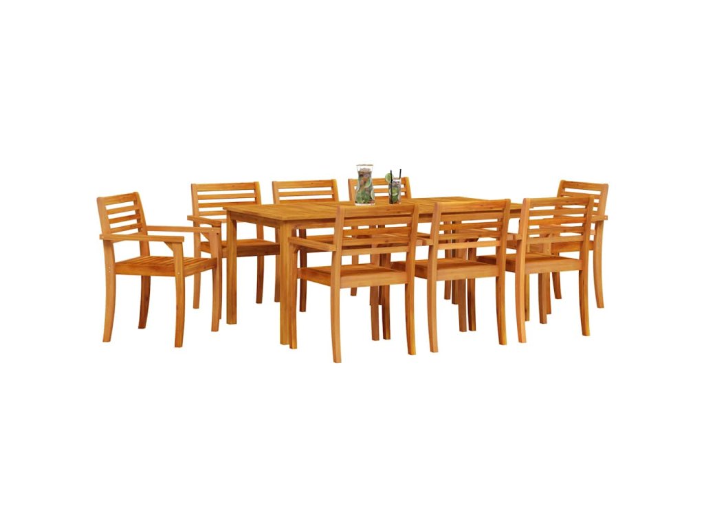 - Přírodní akáciové dřevo: Celý set je vyroben z masivního akáciového dřeva, známého svou pevností a odolností. Tato volba materiálu zajišťuje přírodní povrch, který obohacuje jakýkoliv venkovní prostor svou krásnou kresbou a barevnou variabilitou. Jako tvrdé dřevo je odolné proti povětrnostním vlivům, což slibuje dlouhodobé použití.