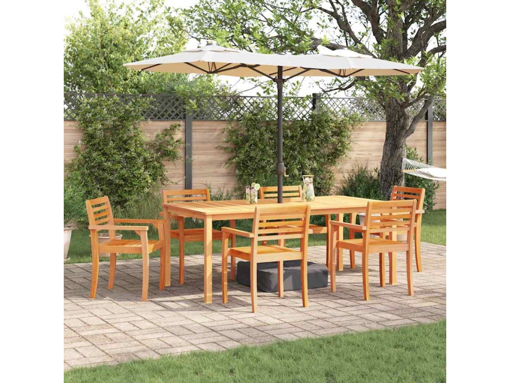 Tento rustikální zahradní jídelní set znamená nadčasovou eleganci díky svému přírodnímu hnědému akáciovému dřevu - skvělé pro ty, co chtějí mít kousek přírody venku. Robustní, ale hezký design nabízí dost místa pro setkání s rodinou a přáteli na terase nebo v zahradě. Teplé, zemité tóny dřeva se dobře hodí do venkovního prostředí, vytvářející příjemnou atmosféru pro jakoukoliv akci.
