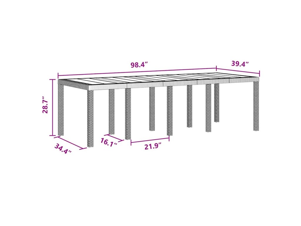 Tahle moderní venkovní lounge souprava je přesně to, co potřebuješ pro relaxaci a zábavu. S veselými liniemi a minimalistickým stylem se hodí na jakoukoli letní zahradu nebo terasu. Její prostorný obdélníkový tvar nabízí dost místa pro rodinu i kamarády, a texturovaný povrch dodává dotek elegance. Tato souprava spojuje skvělý vzhled s praktičností, takže je ideální na slunečné brunchi, večerní drinky nebo jen na lenošení.
