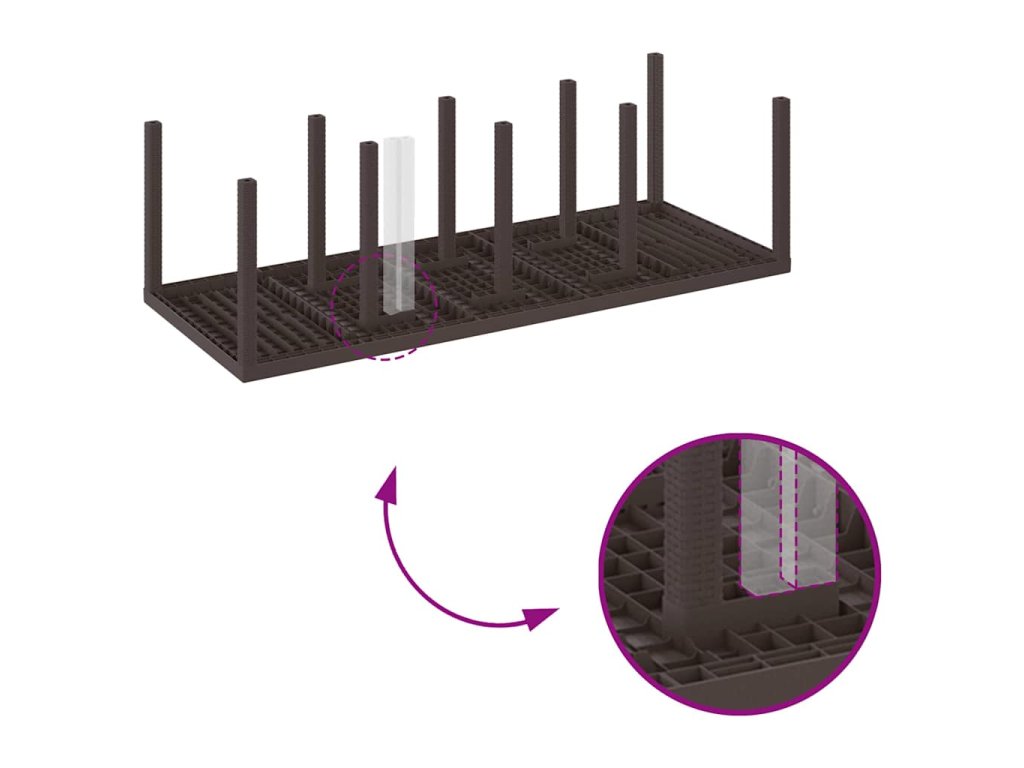 - Materiály: Vyrobeno z kvalitního UV-odolného poly ratanu. Je to pevný materiál, co bez problémů snese špatné počasí a každodenní používání. Matný povrch vypadá elegantně a neodráží světlo, takže ti nic nepokazí čas venku.