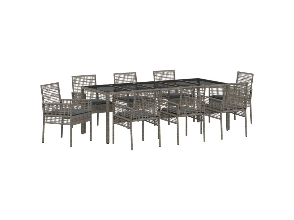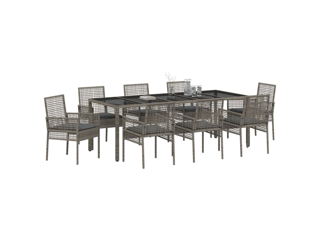 - Kompletní set: Obsahuje 1 velký stůl a 8 pohodlných židlí, ideální pro příjemné venkovní stolování.