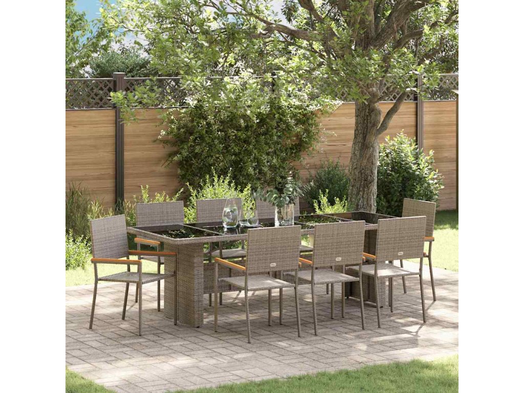 Tato moderní venkovní sada nábytku je parádní mix stylu a funkce, což z ní dělá super volbu pro zahrady a terasy, kde si chceš užívat venkovního stolování nebo jen tak relaxovat. Elegantní obdélníkový tvar dodává moderní atmosféru, je jednoduchý a praktický, žádné zbytečnosti. Nabízí dostatek místa na sezení, ideální pro letní večírky nebo pohodové rodinné chillování. Představ si, jak si užíváš čas na terase, povídáš si s kamarády, obklopený odolným polyratanem a hladkými liniemi, co vyzařují pohodlí a styl.