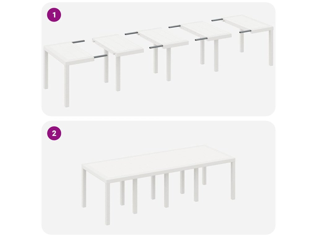 Tento elegantní moderní zahradní jídelní set spojuje elegantní současný design s praktičností, což ho činí dokonalým doplňkem venkovních prostor. Ideální pro stolování venku během letních měsíců, jeho obdélníková konfigurace podporuje rodinná shromáždění a elegantní večeře. Se zaměřením na jednoduchost a funkčnost tento set kombinuje čisté linie a minimální ozdobnost, aby vytvořil klidné venkovní prostředí.