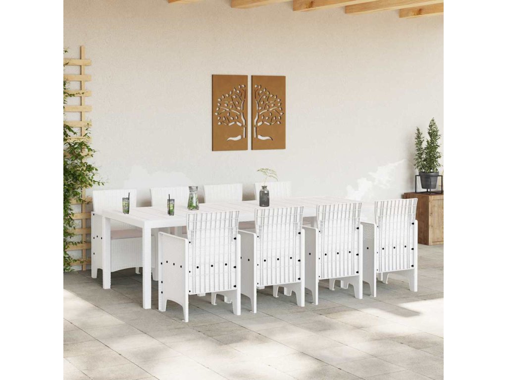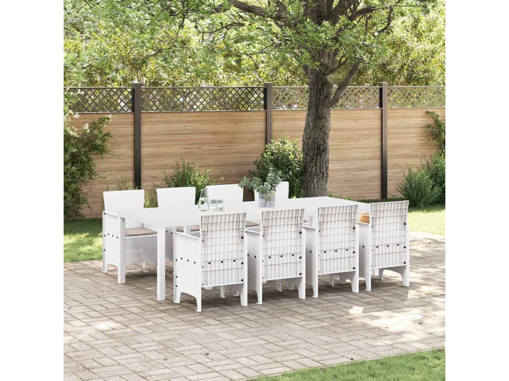 - Moderní poly ratanová konstrukce Jídelní set je vyroben z UV-odolného poly ratanu, který kombinuje eleganci s trvanlivostí. Jeho textura a matný povrch dodávají sofistikovaný, ale decentní vzhled, což ho činí vhodným pro různé venkovní prostředí, od teras po zahrady. Tato volba materiálu zajišťuje odolnost proti tvrdým slunečním paprskům, přičemž nabízí styl na dlouhou dobu.